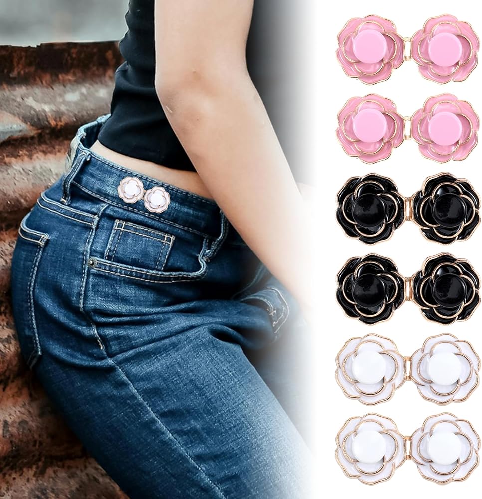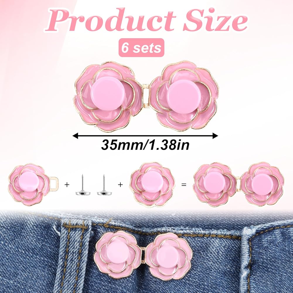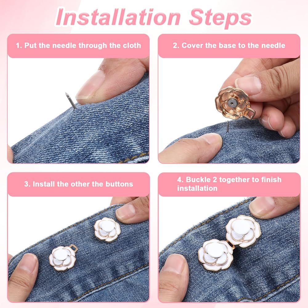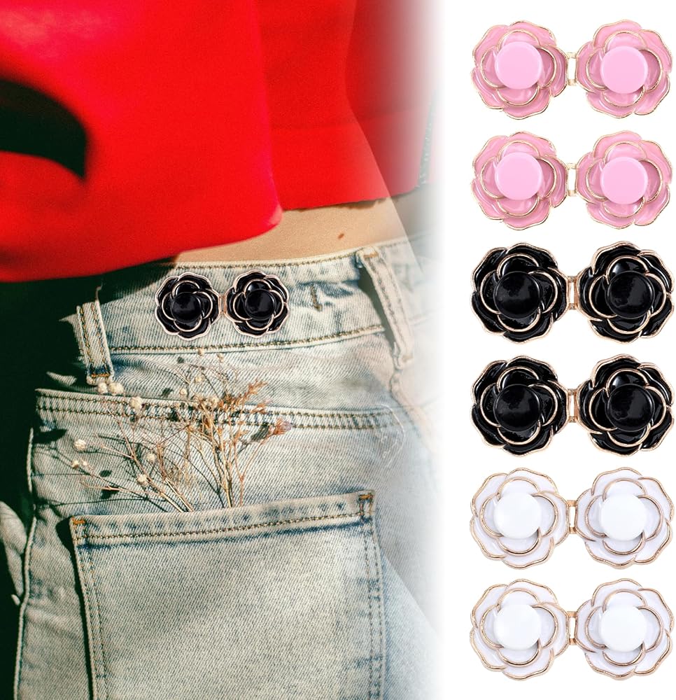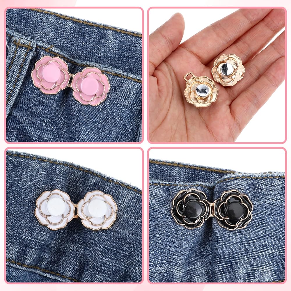 【Jean buttons for loose jeans】Our pant waist tightener set includes 12 pieces of flower-shaped jean buttons, perfect for adjusting loose jeans, pants, and skirts. With 2 sets each of pink, white, and black buttons, you'll have enough variety to match any outfit