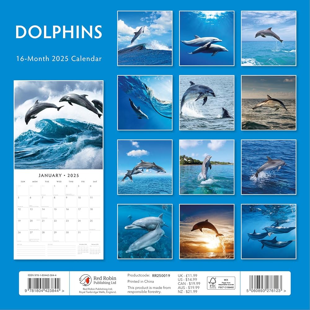 Dive into the mesmerizing world of dolphins with the 2025 'Dolphins' wall calendar. Sized at 12" x 24" open and printed on premium thick & sturdy paper, this calendar features stunning photography of these intelligent and playful creatures. Each month brings a new image of dolphins in action, from acrobatic leaps over the waves to serene moments of underwater beauty. Whether you're a marine life enthusiast or simply fascinated by these friendly mammals, this calendar captures the grace, joy, and intelligence of dolphins. Their captivating presence will bring a touch of the ocean into your daily life.