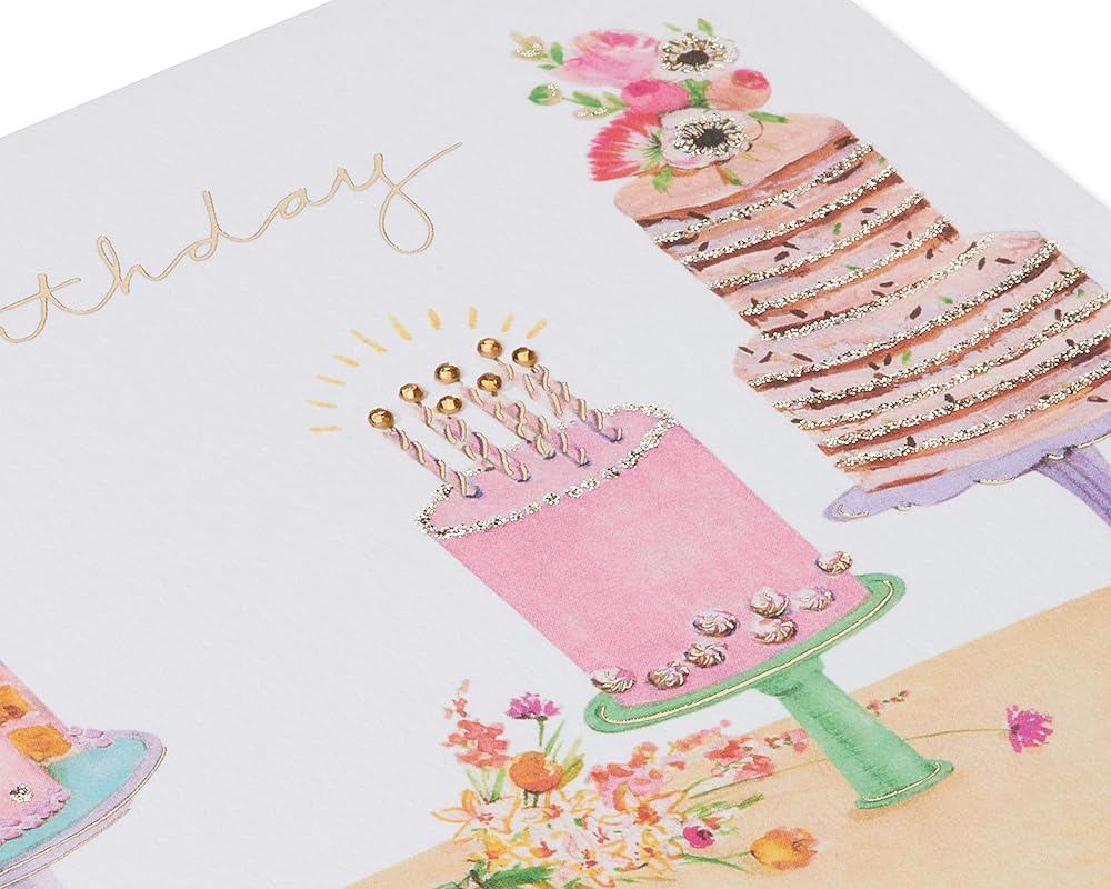 Make celebrations more amazing with uniquely crafted birthday cards from Papyrus! This cake-themed birthday card features glitter embellishments and gem detailing. Coordinating envelope and a gold foil sticker help you deliver your message in style. With uplifting wishes and a pretty pastel variety of colors, it's perfect for celebrating anyone, including a friend, co-worker or family member, like a daughter, son, granddaughter, grandson, niece and nephew. When you're looking for extra-special birthday cards, Papyrus offers superior quality and exquisite craftsmanship every time!
