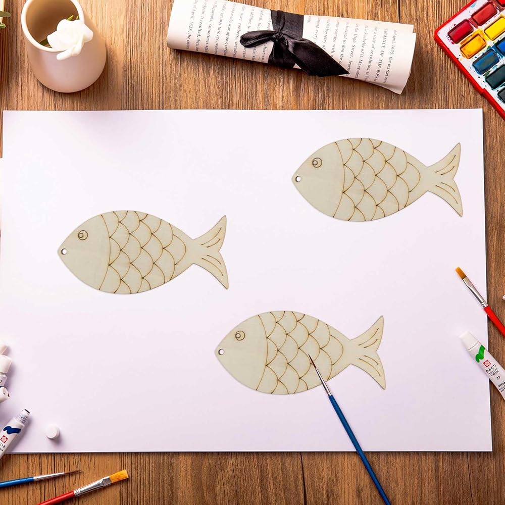 • PACKAGE: Pack of 20pcs fish wood crafts cutouts. Each wood piece was well polished, blank wood slices are ready to be paint and write, you may stain, drill, curve and decorate them as you like.