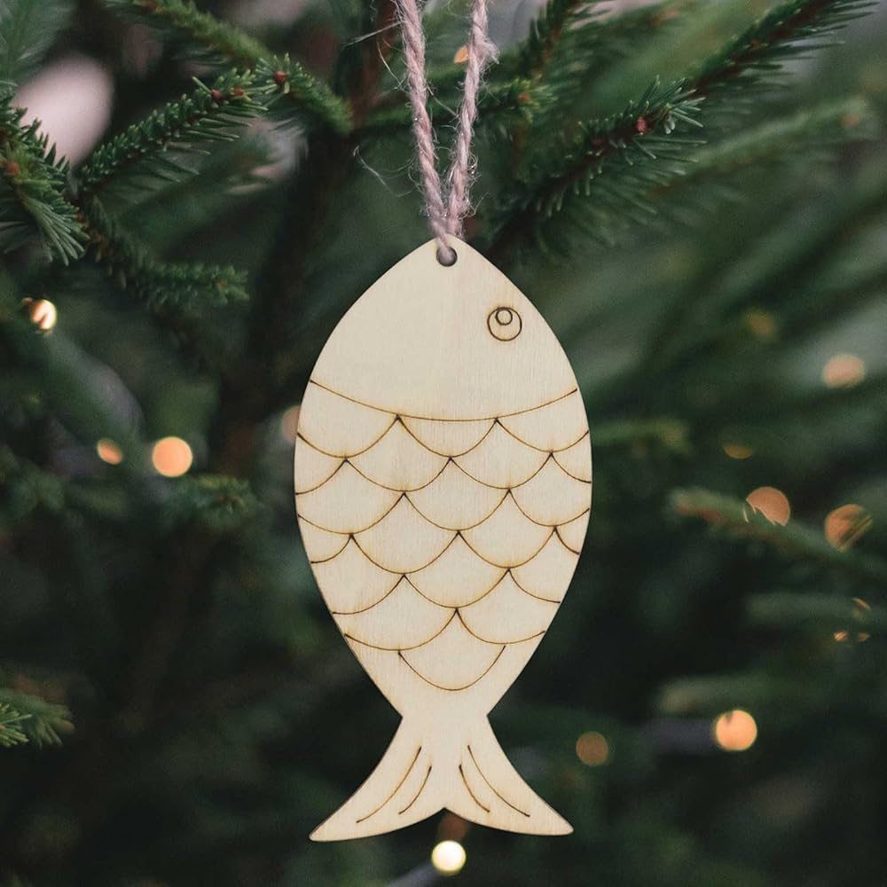 • FEATURE: Wooden fish shaped design hanging ornaments, with a hole and rope, can be used for hanging decoration. Perfect for using as tags, party board, classroom board.