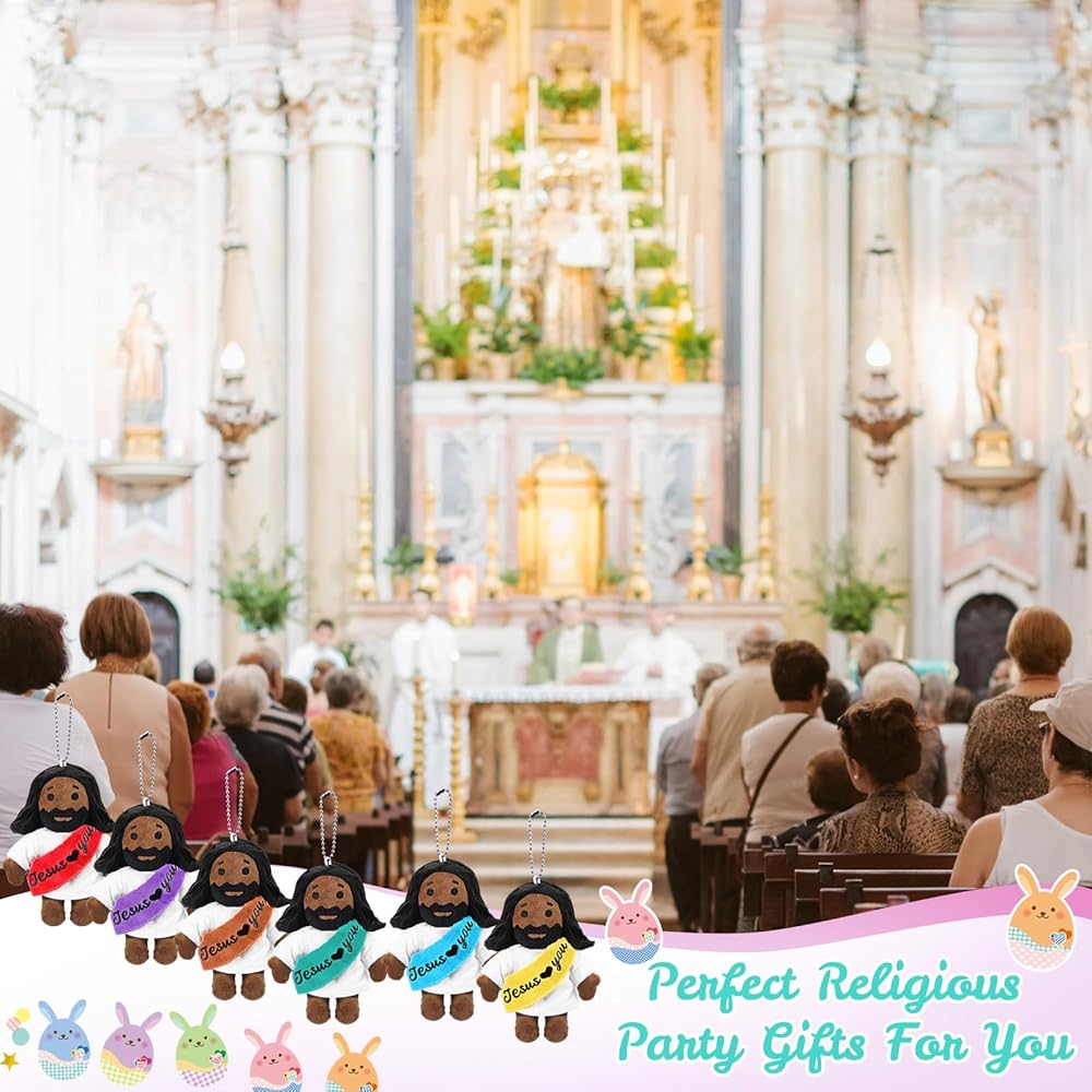 • Jesus Plush: you will get 12 pieces of Jesus plush doll with key chains, and come in 6 colors about red, blue, purple, yellow, brown, cyan, each size is about 3.9 x 1.6 x 4.3 inch/ 10 x 4 x 11 cm, enough quantities to meet your different needs