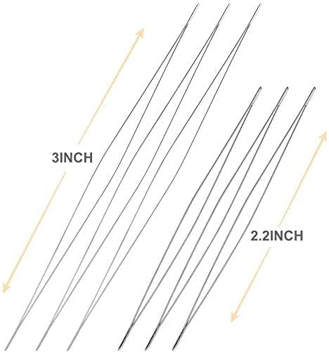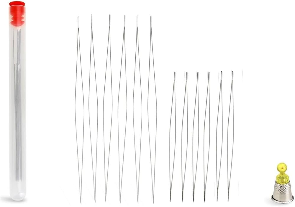 12 Pieces of needles: 6 pieces beading needles of 2.2 inches and 6 pieces big eye beading needles of 3 inches. You always have backups in the bottle!