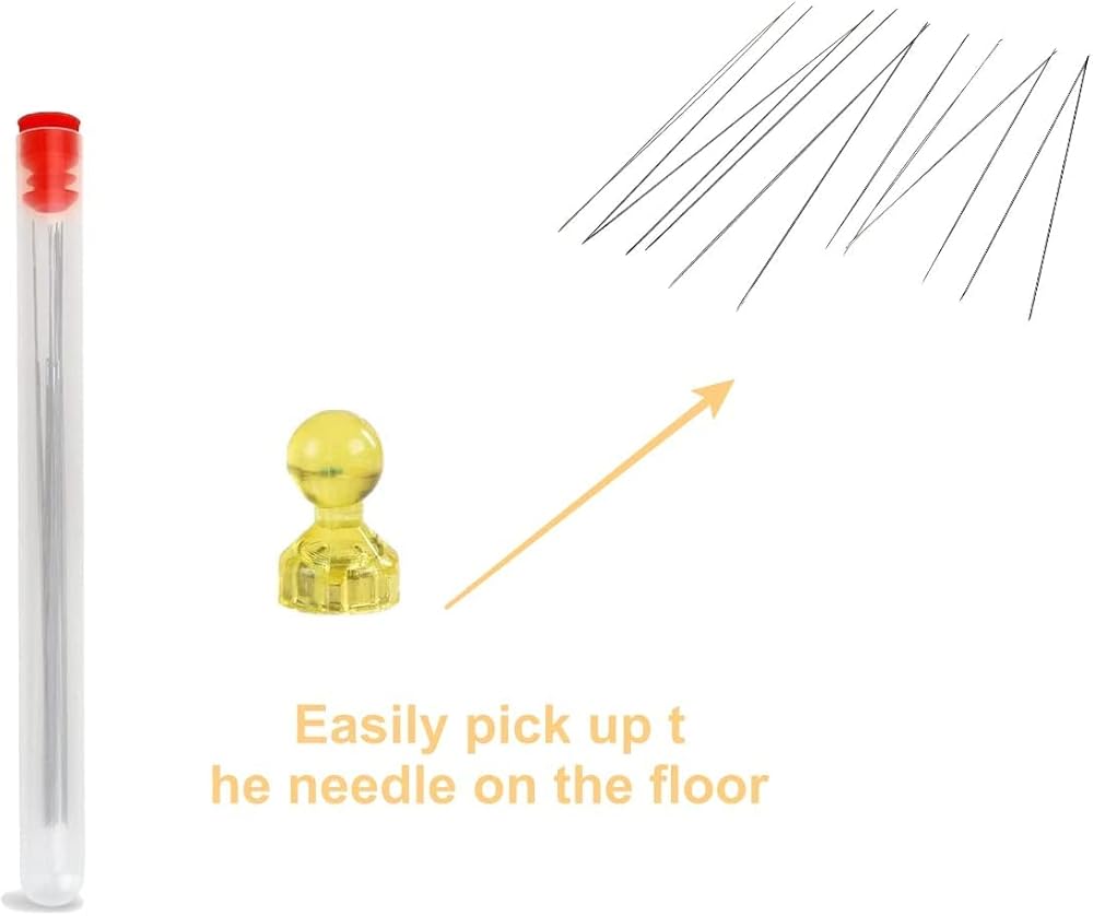 Big eye beading needles set: 12 pieces of needles with one clear needle bottle, easy to take and carry, 1 small magnet that helps pick up the needle more easily when it falls down to the ground.