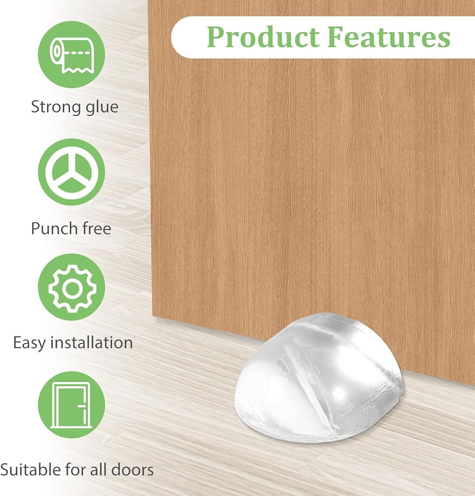 Practicality: The floor mount door stop is made of transparent material, with a simple and stylish appearance. Door buffer for wall can be easily integrated into various home decoration styles, not abrupt, and improve the overall aesthetics. The floor mounted door stops can effectively prevent the door from hitting the wall when opening or closing, reduce noise and damage, and protect the home environment