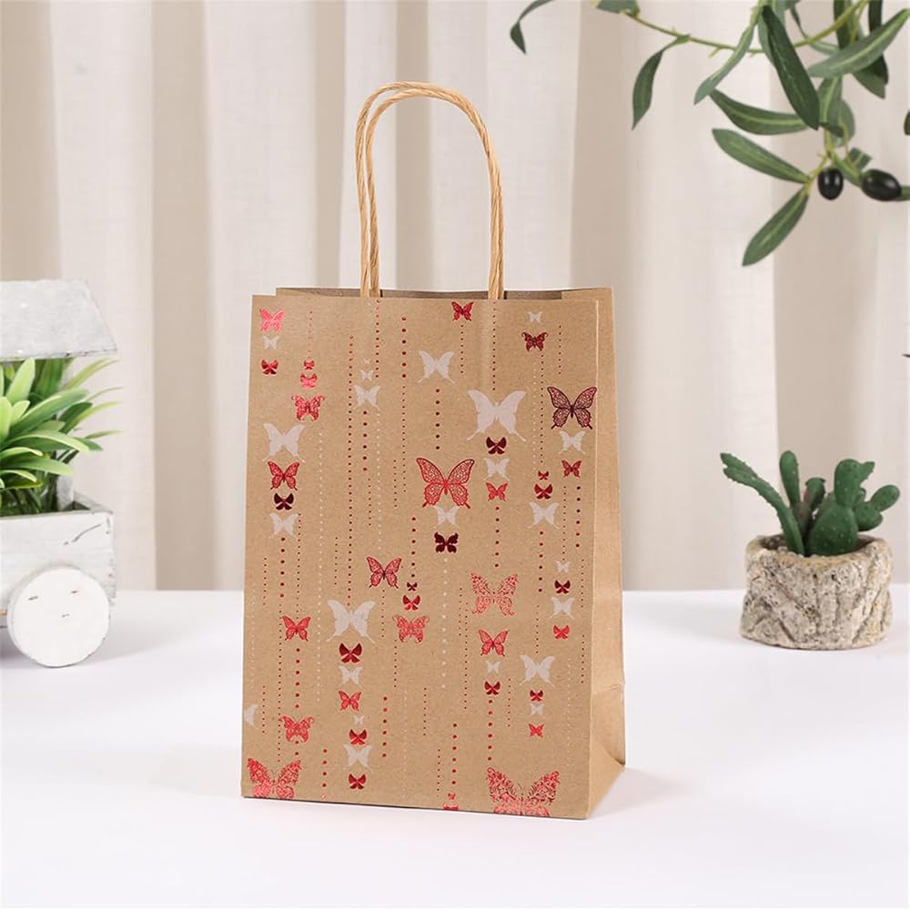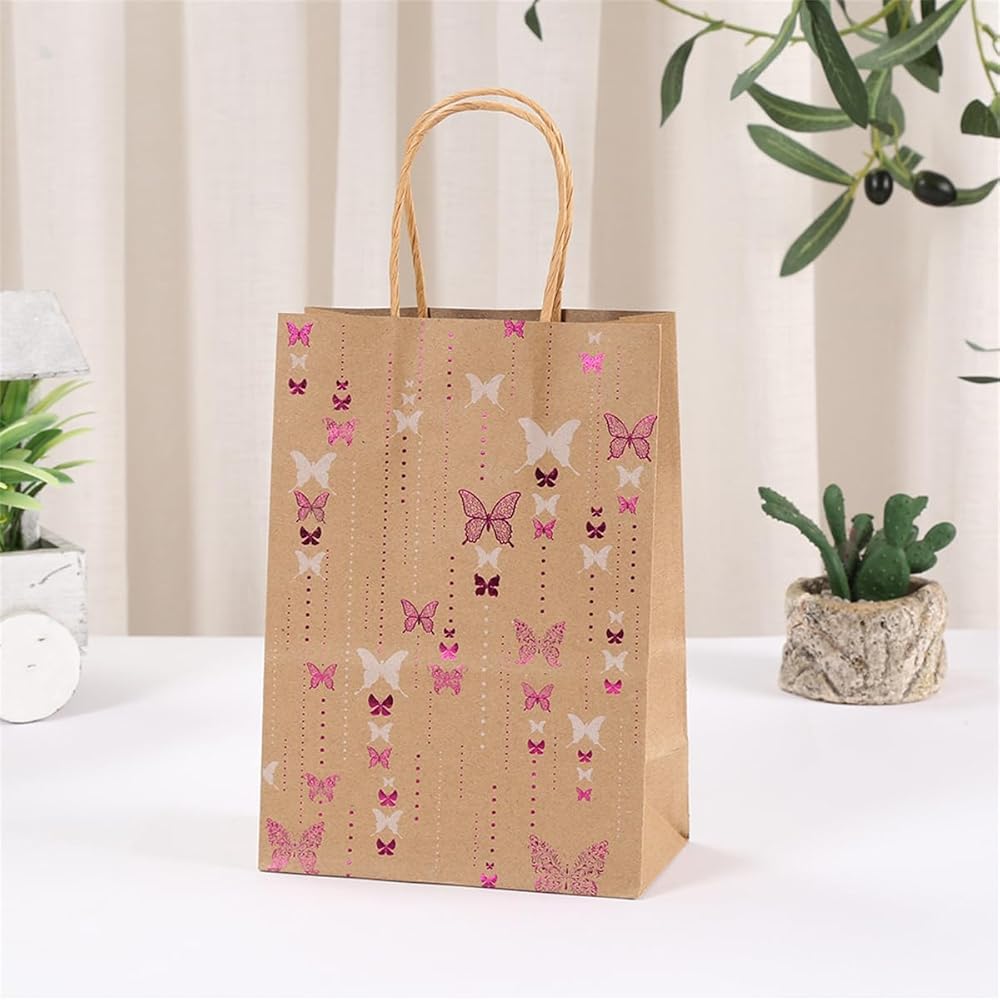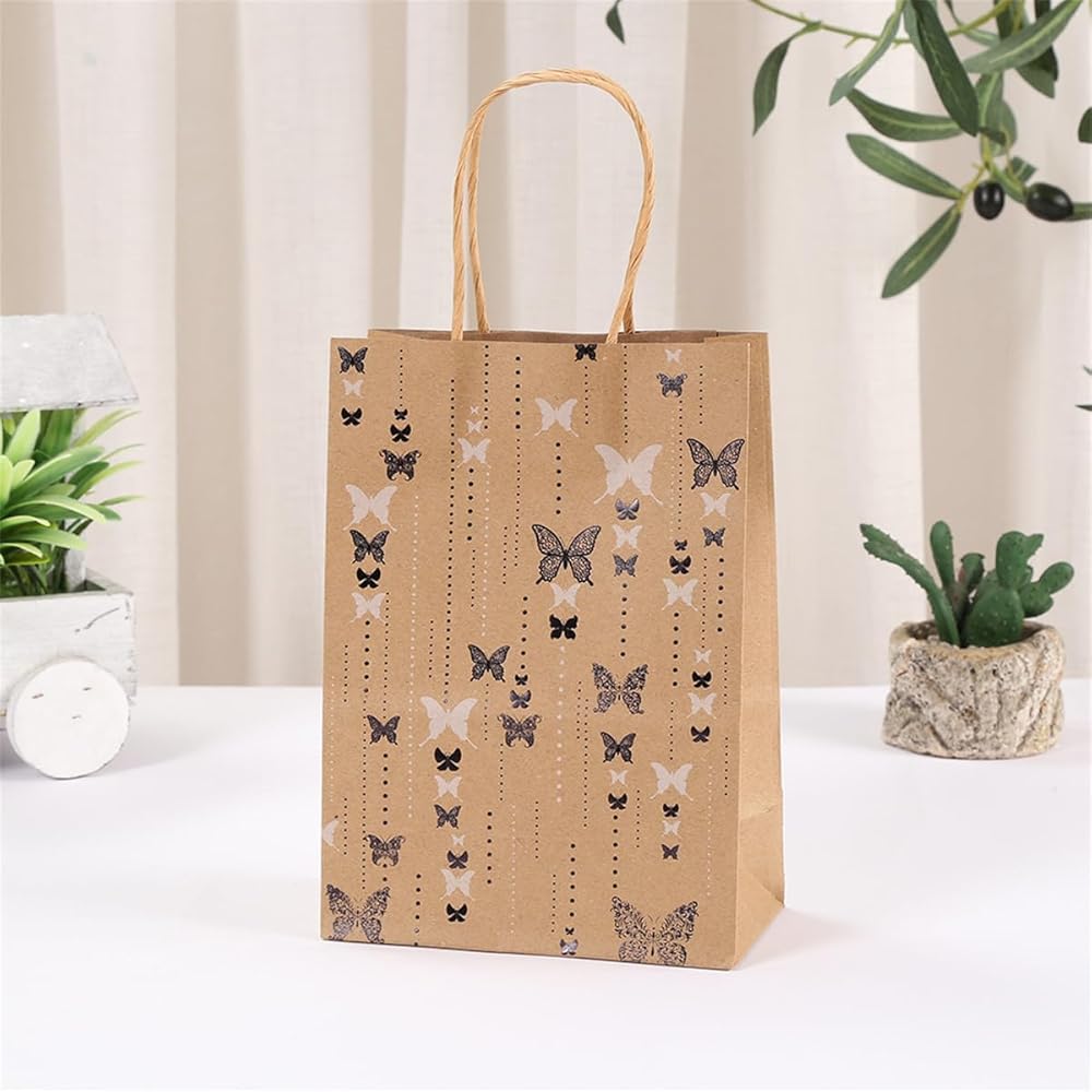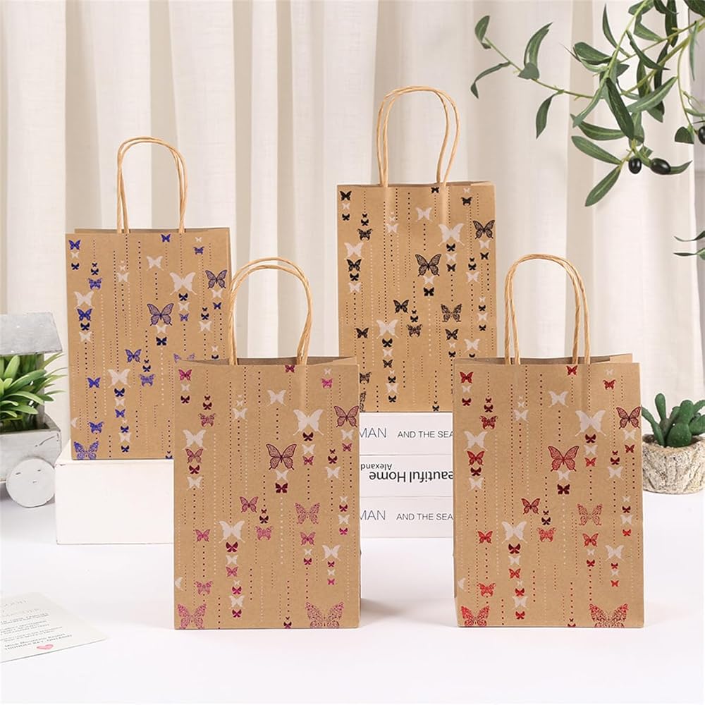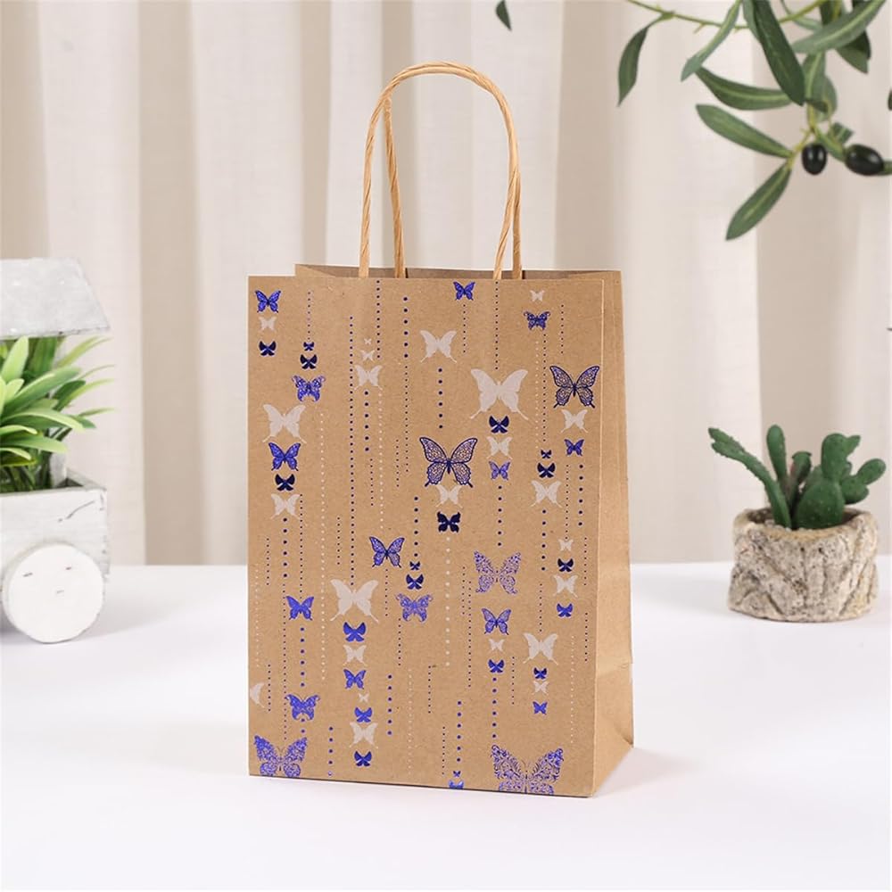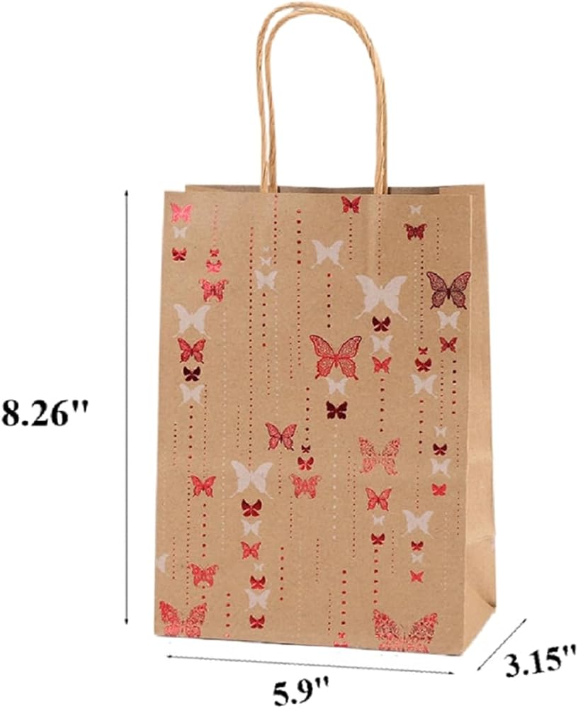 Jevlon Butterfly تحت عنوان كرافت الورق الهدايا الأكياس القابلة للتدوير مع مقابض لحفل عيد الميلاد ، الزفاف ، عيد الميلاد ، استحمام الطفل ، عيد الشكر الحقائب الأكياس الأكياس.