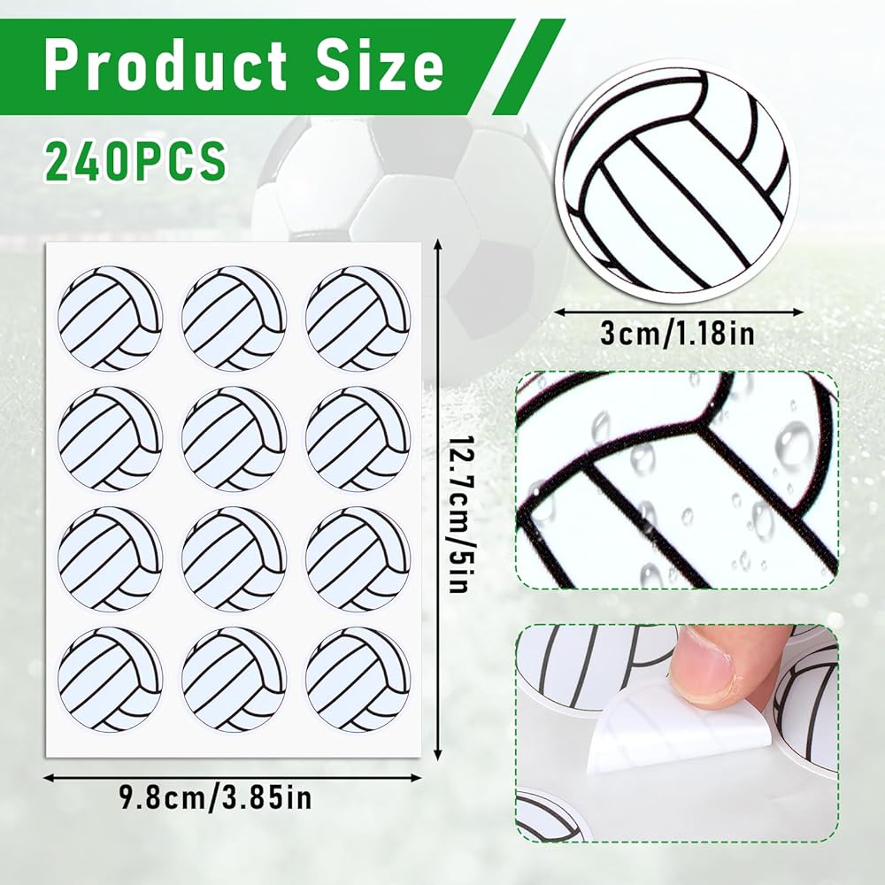 240 ملصقات للكرة الطائرة للاصطدامات Scrapbooking 1.18in ملصقات رياضية مقاومة للماء للكرة الطائرة للاشتعالات لفيلم القصاصات لفينيل ملصقات كرة لاصقة لتوريد الحفلات الرياضية للكرة الطائرة.