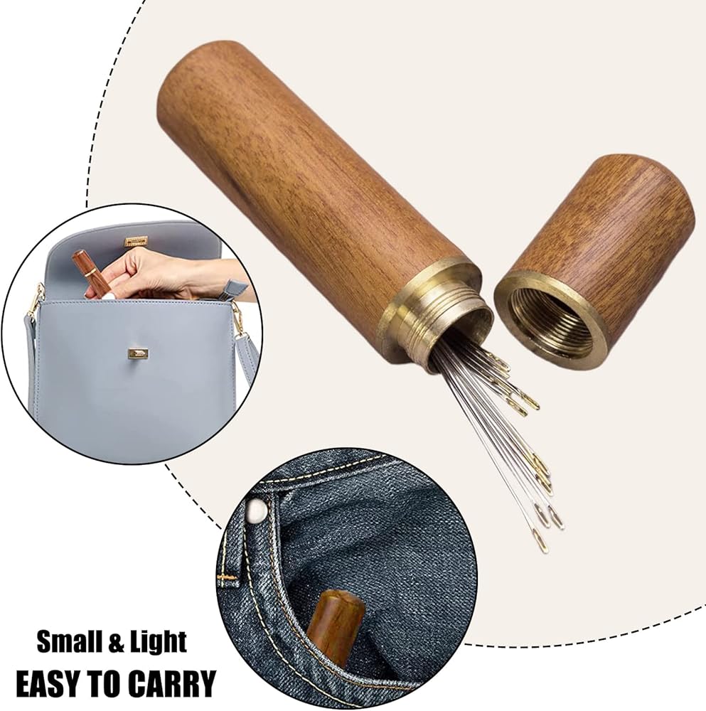 【25 قطعة إبر خياطة مع حقيبة تخزين】: تتضمن العبوة 25 قطعة إبر خياطة خياطة يدوية كبيرة للعين من 5 مقاسات: 5 قطع 1.65 بوصة، 5 قطع 1.8 بوصة، 5 قطع 2.04،5 قطع 2.2 بوصة، 5 قطع إبر تطريز 2.36 بوصة. 1 علبة إبرة خشبية مع نمط نحت زهر البرقوق. لون بني فاتح. إبر ذاتية الخيط للخياطة اليدوية ومجموعة حامل الخشب.