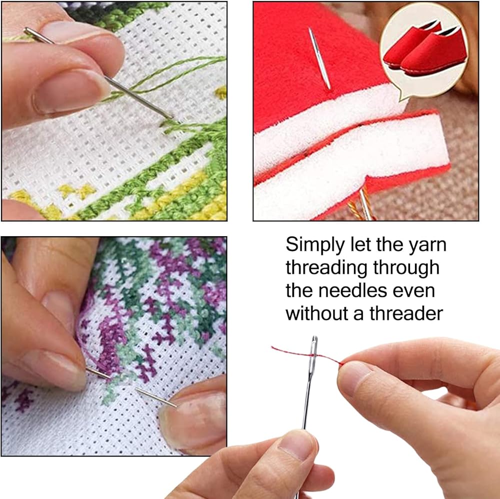 【إبر خياطة كبيرة للعين】: تتميز إبر التطريز الطويلة هذه بتصميم عين كبيرة. يمكن ببساطة السماح للخيوط بالتمرير من خلال فتحات العين الكبيرة حتى بدون خيط بلاستيكي أو حاوية أو أي جهاز خياطة آخر. توفير الوقت والطاقة بشكل فعال.