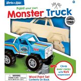 Kit includes 1 real wood Monster Truck, 1 sticker sheet, 1 stencil sheet, 1 non-toxic metallic finish, 5 non-toxic acrylic paint tubs, 2 artist-quality paintbrushes, and 1 instruction sheet with painting guide