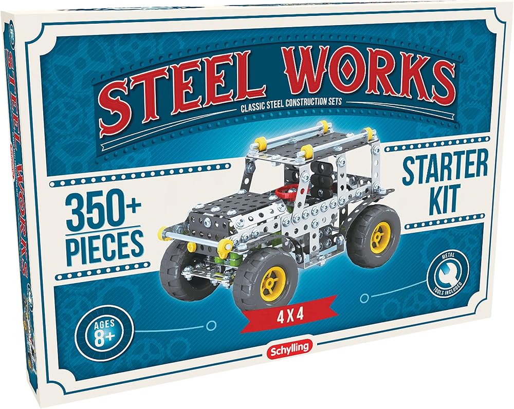 Explore the world of real building with Steel Works, the classic steel construction set. Be inspired, challenged and amazed as you explore your creativity and imagination. The durable steel parts let you build and rebuild real toys you can play with. Build something you are proud to display or take it apart and try something new. Each set comes with real steel parts, tools and detailed instructions. Perfect for creative builders ages 8+.