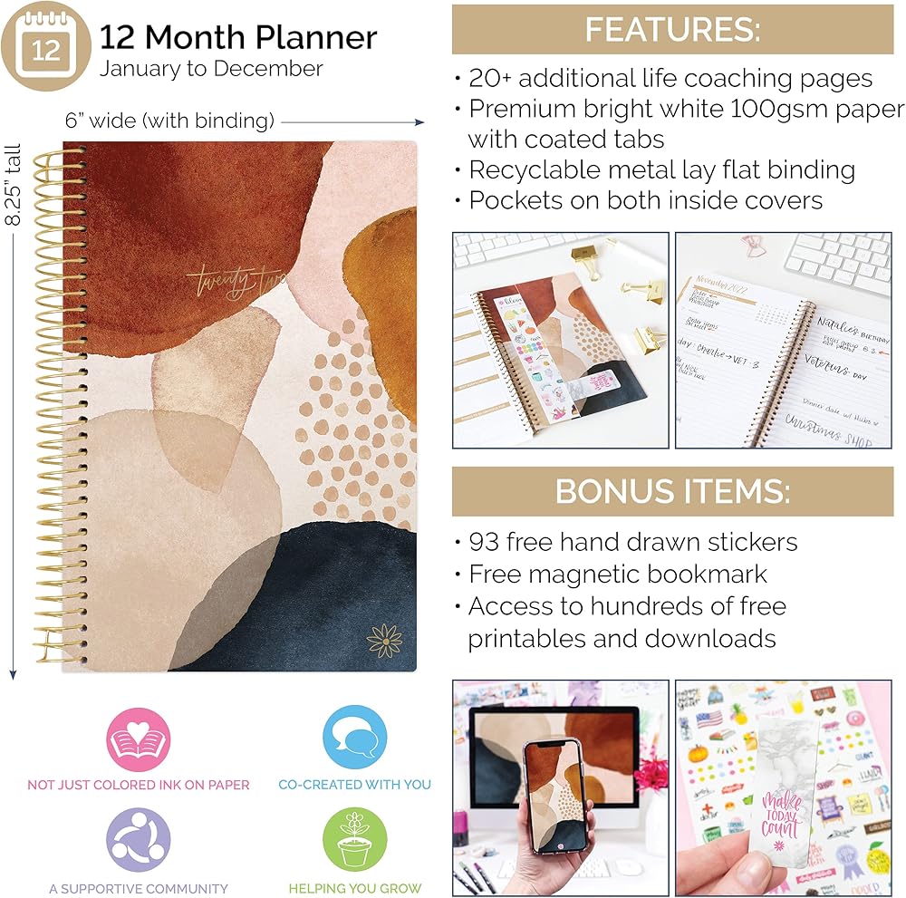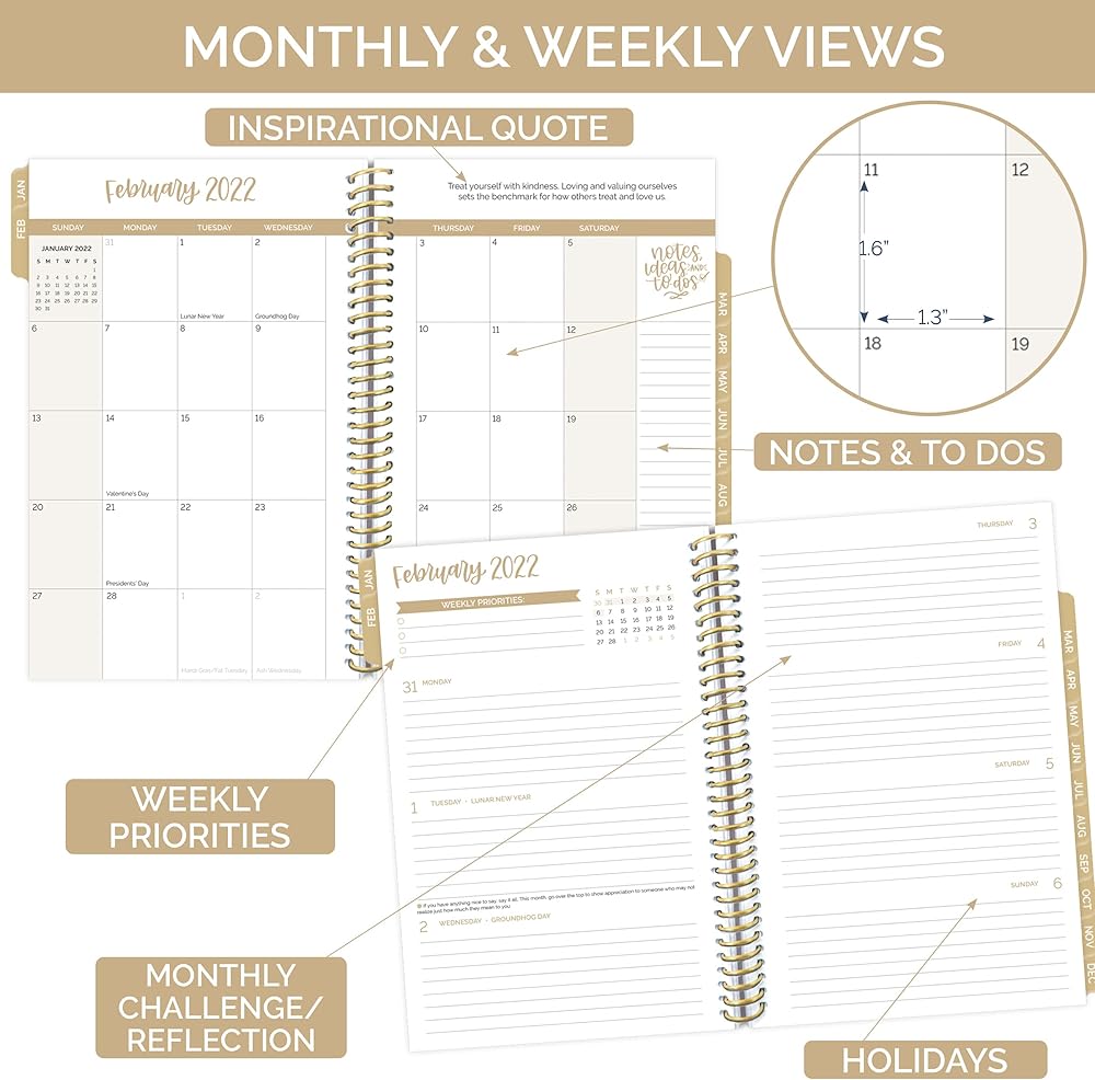 🌸premium الميزات: أغطية ناعمة وخفيفة الوزن مصنوعة من بطاقة سميكة مع تصفيح فيلم لامع ، وعلامات شهرية ، وورقة Deluxe 100GSM أبيض أبيض مقاومة للنزيف ، وملزمة حلزانية للمعادن القابلة لإعادة التدوير ، والخلط الأمامي والخلف داخل جيوب التخزين ، وملصقات ملصق مجانية ومراقبة!