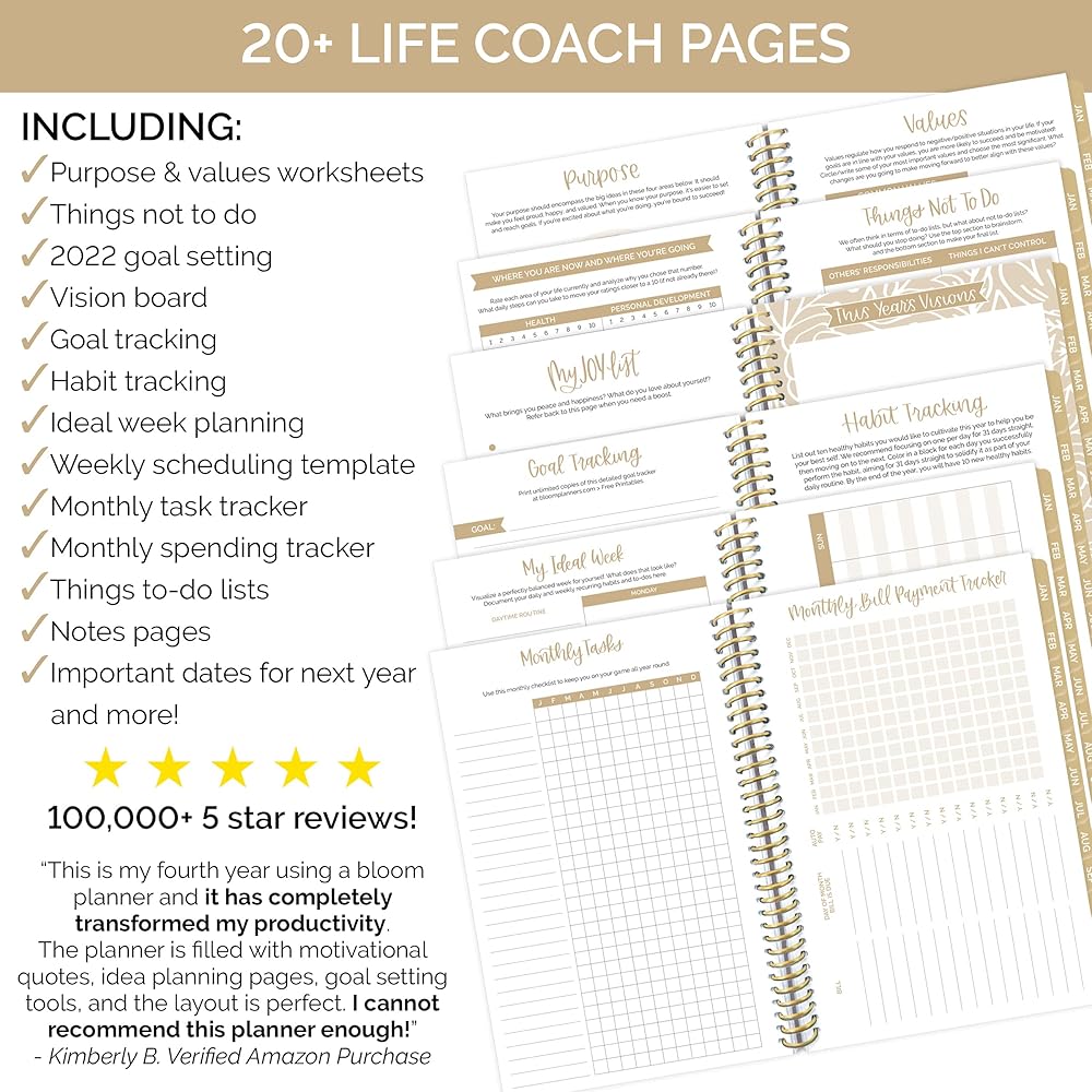 Ploom Daily Planners 2022 Day Year Planner (يناير 2022 - ديسمبر 2022) - 5.5 "× 8.25" - كتاب منظم جدول الأعمال أسبوعيًا/شهريًا مع ملصقات ومرجعية - ترابي الملخص