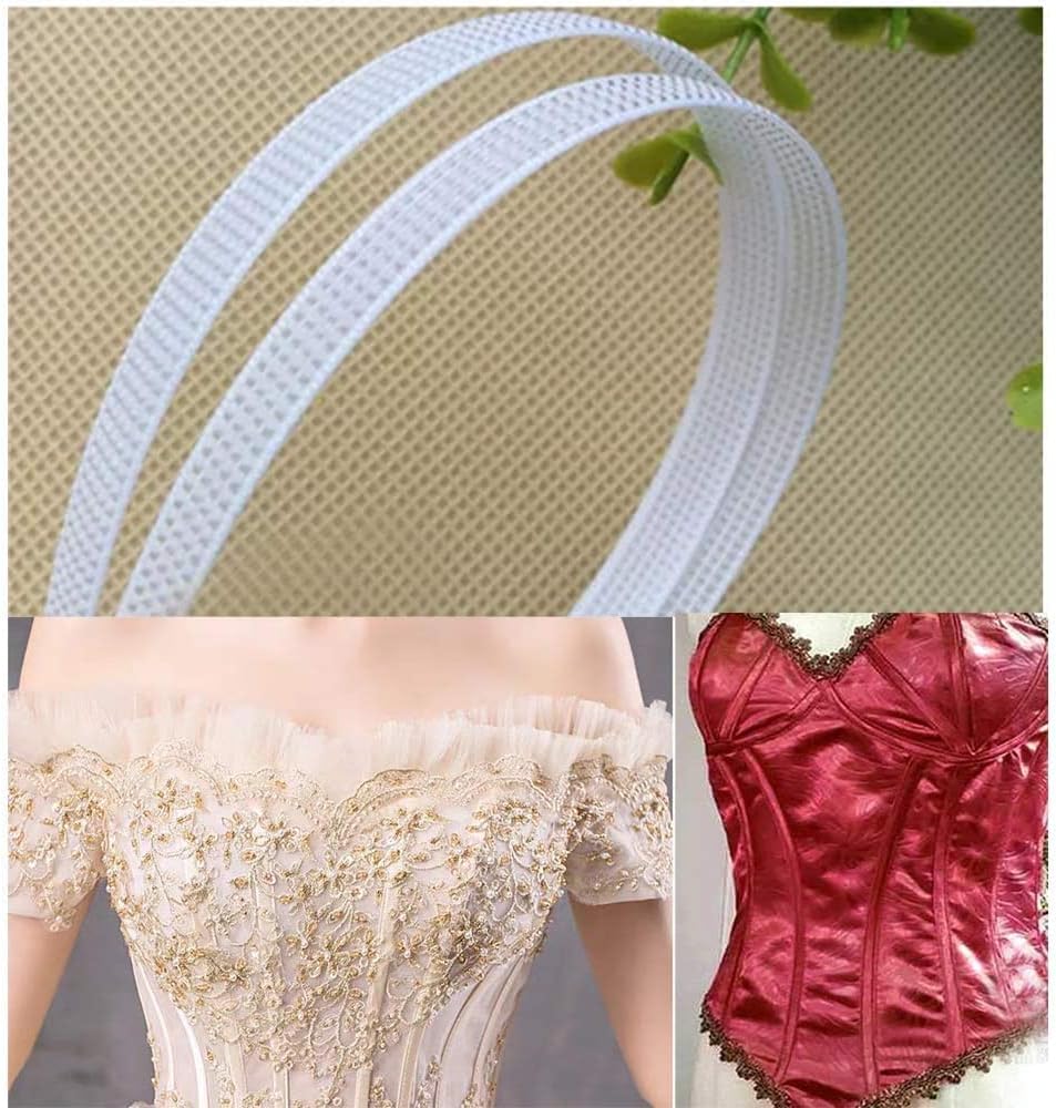 - يوفر Boning الشكل والدعم للملابس بدون حمالات والسترات وملابس السباحة. يمكن خياطة هذا قطعة العاج يدويًا أو بالآلة.