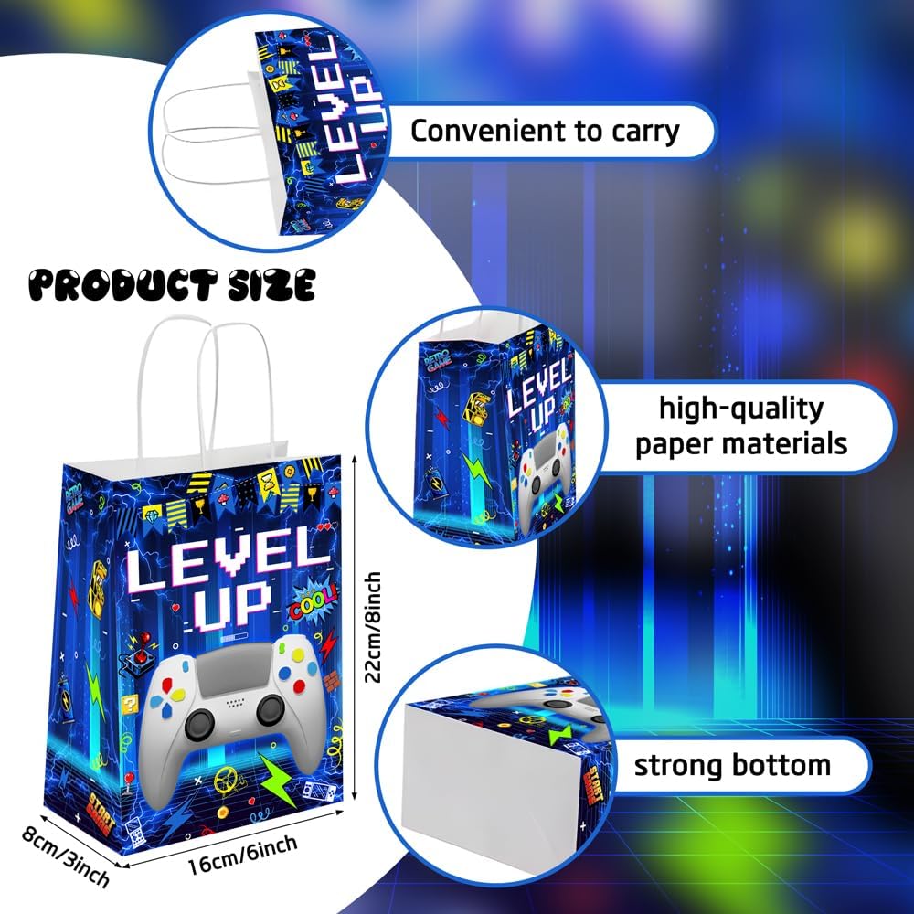 لعبة Lofaris على حقائب Goodie لحفل عيد ميلاد Gamer ، 16 Pack Arcade Video Game Fags ، Treat Candy Favors مع مقابض ، 8 × 6 × 3 بوصات ، لوازم حفلات الألعاب للأطفال والكبار