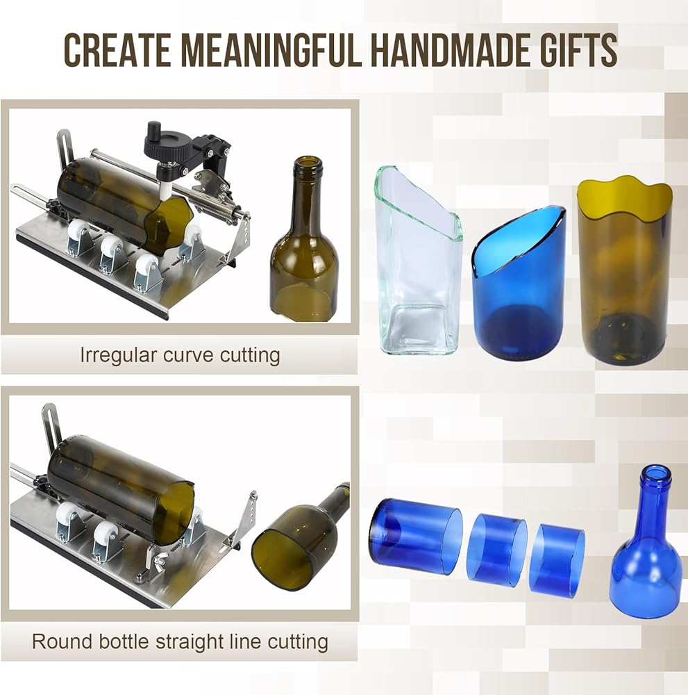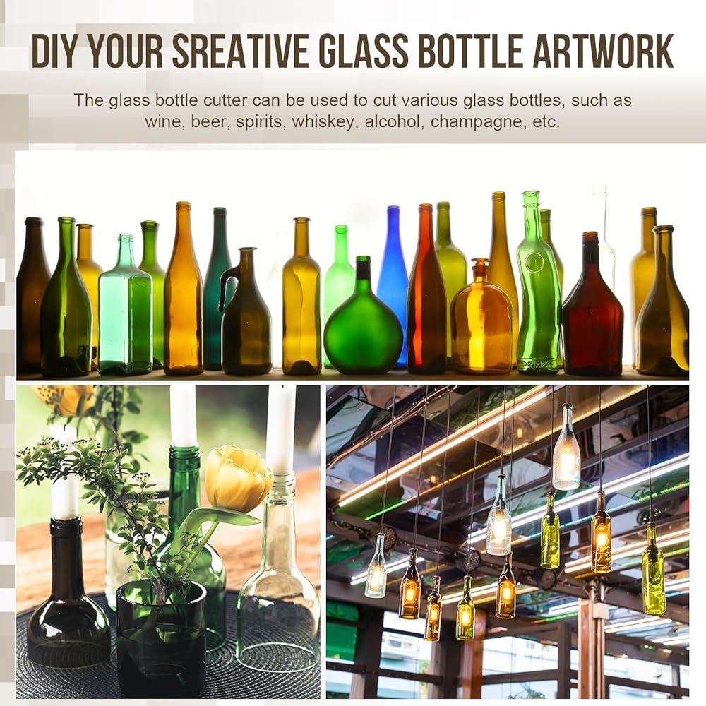 Creative Cutting: our glass bottle cutter not only cuts bottles into straight lines but also into curved, horizontal, and slanted shapes, allowing for more creative designs; Experience the fun of cutting bottles with this versatile tool, showcasing your creativity; Suitable for bottles up to 20 inches in size, such as beer, wine, whiskey, spirits, champagne, round bottles