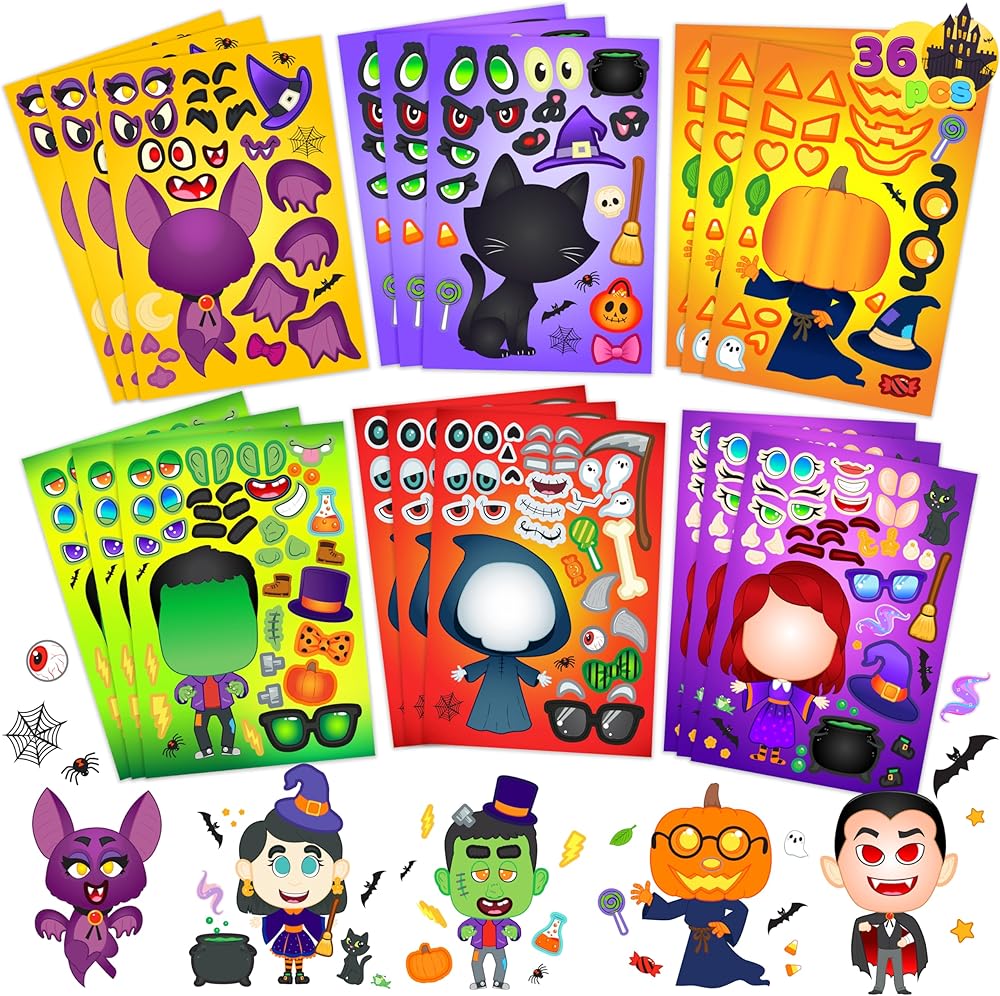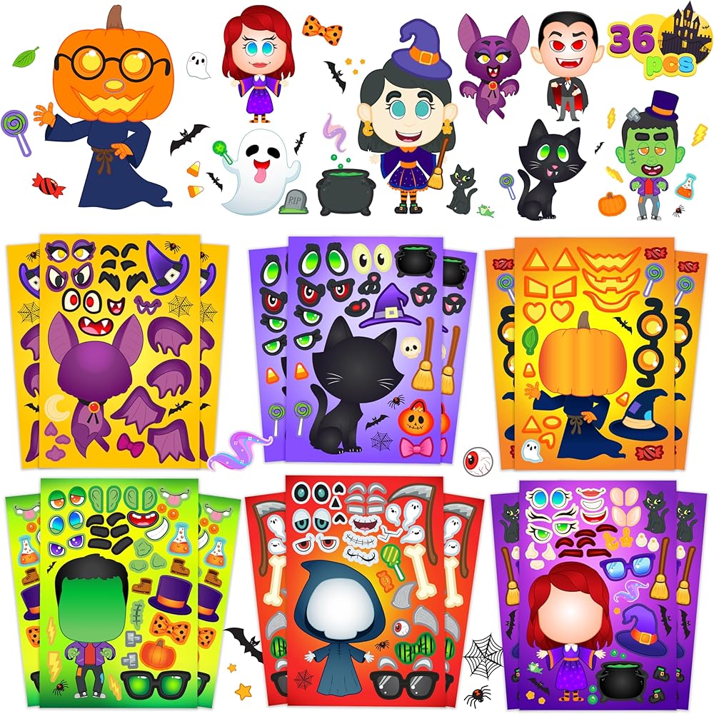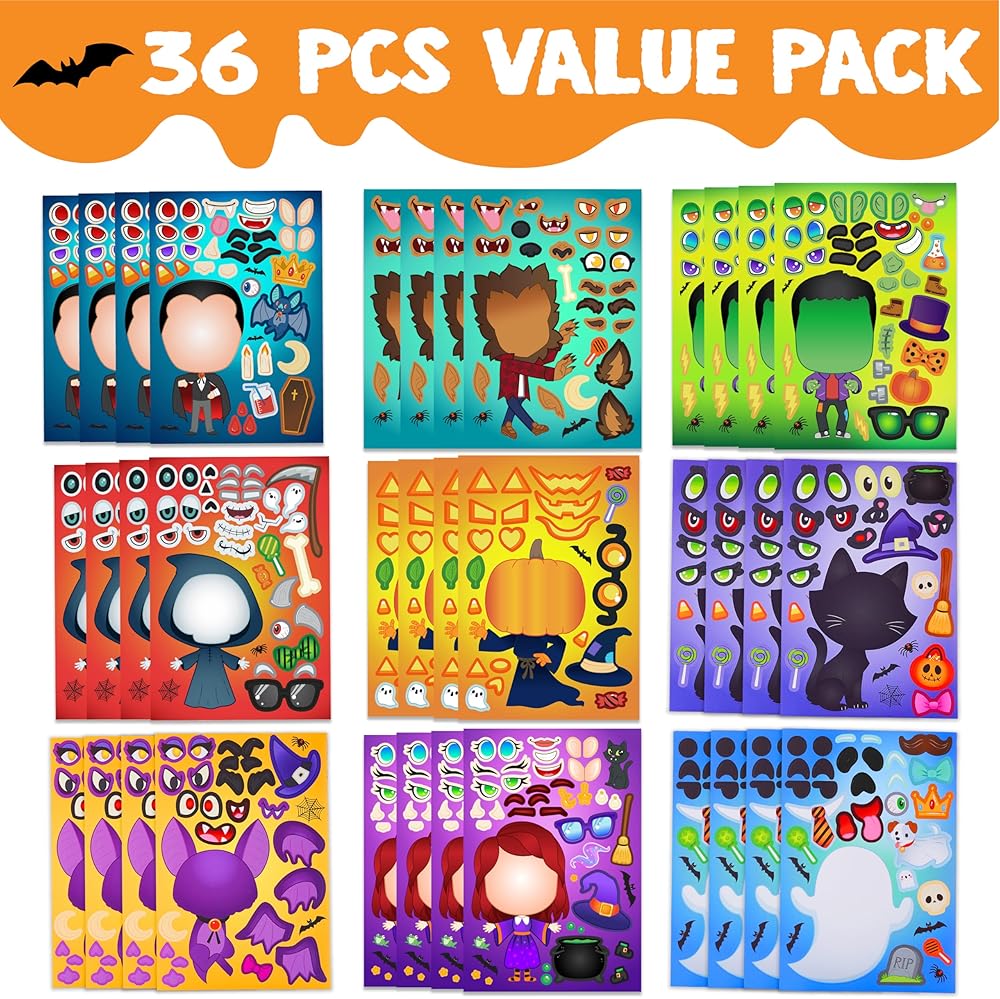 Joyin 36 PCS Halloween Craft Stickers for Kids Party Favor ، اصنع ملصقات الوجه مع تصاميم Witch Vampire ، و DIY Craft Supplies for Halloween Party Game Classroom Antives Goildies Goildies