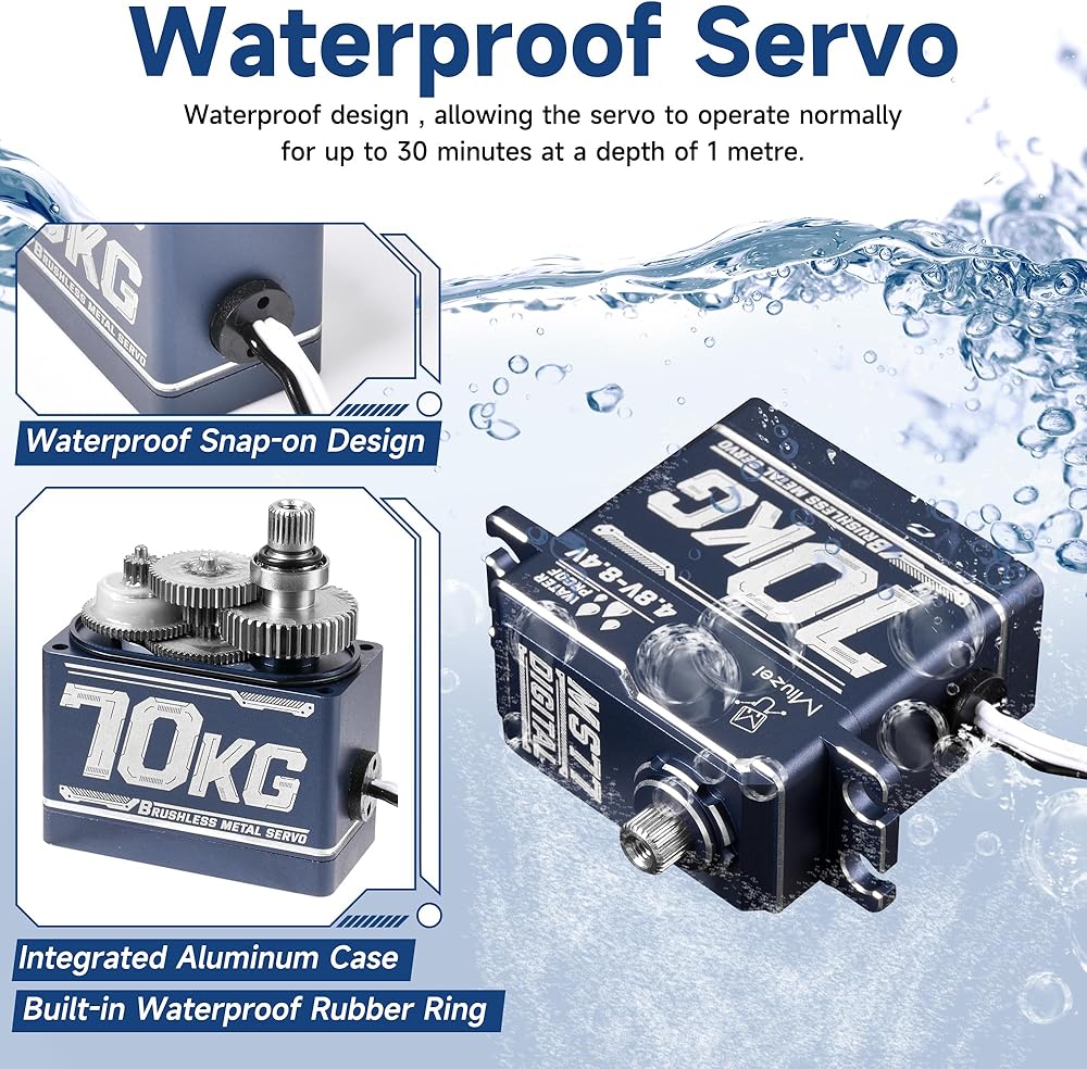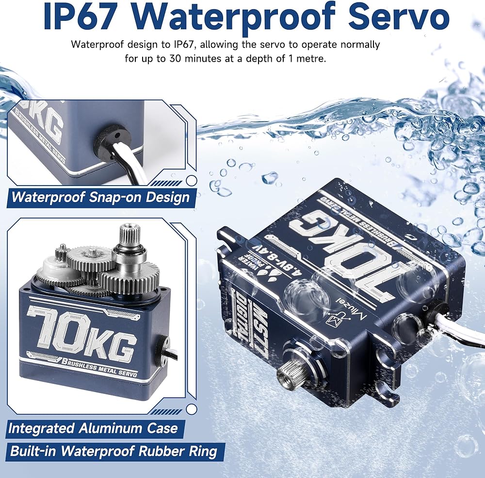 P67 مقاوم للماء: يعتمد محرك Servo الرقمي على جهاز التحكم عن بُعد تقنية إنتاج عالية الدقة ، مما يقلل من الانحراف وتحسين ختم المنتجات. تصميم IP67 مقاوم للماء ، لا يزال بإمكان المؤازرة العمل بشكل طبيعي عند دخول المياه.