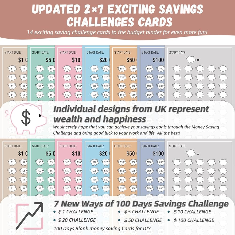💰️【Easy and Fun Saving Challenge】The budget book offers a unique and effective solution for saving money made easy. This innovative approach is perfect for anyone looking to easily achieve their financial goals. 24 Savings Challenges Cards for even more fun to save various budget $5,050, $100, $500, $1,000, $2,000, $5,000, $10,000 etc. and DIY the savings budget what ever you want to save.