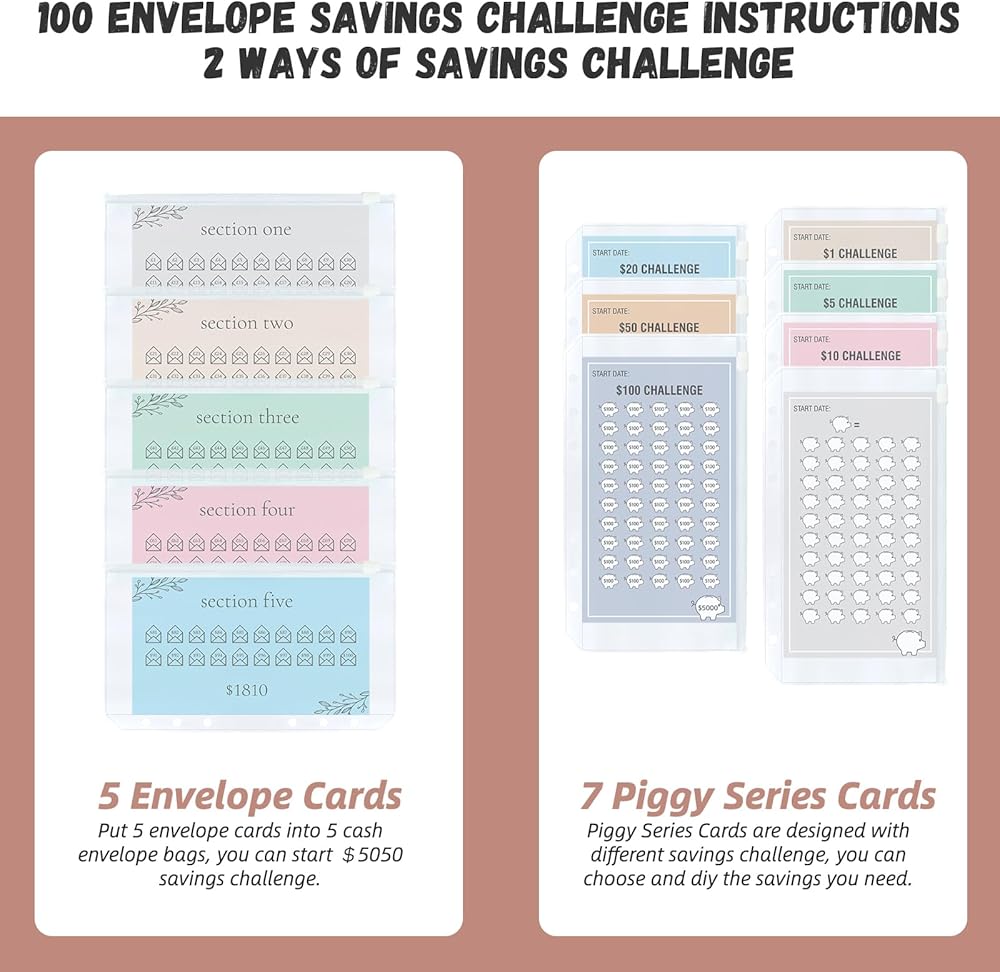 💰️【Perfect Gift】100 envelopes money saving challenge binder is a thoughtful and practical gift for friends and family for a suprise. The original lucky pig design on the card will definitely make your eyes shine and thus bring you wealth and luck while experiencing the fun of budget planning and the challenge of saving! This is the best choice for Christmas or birthday gifts.
