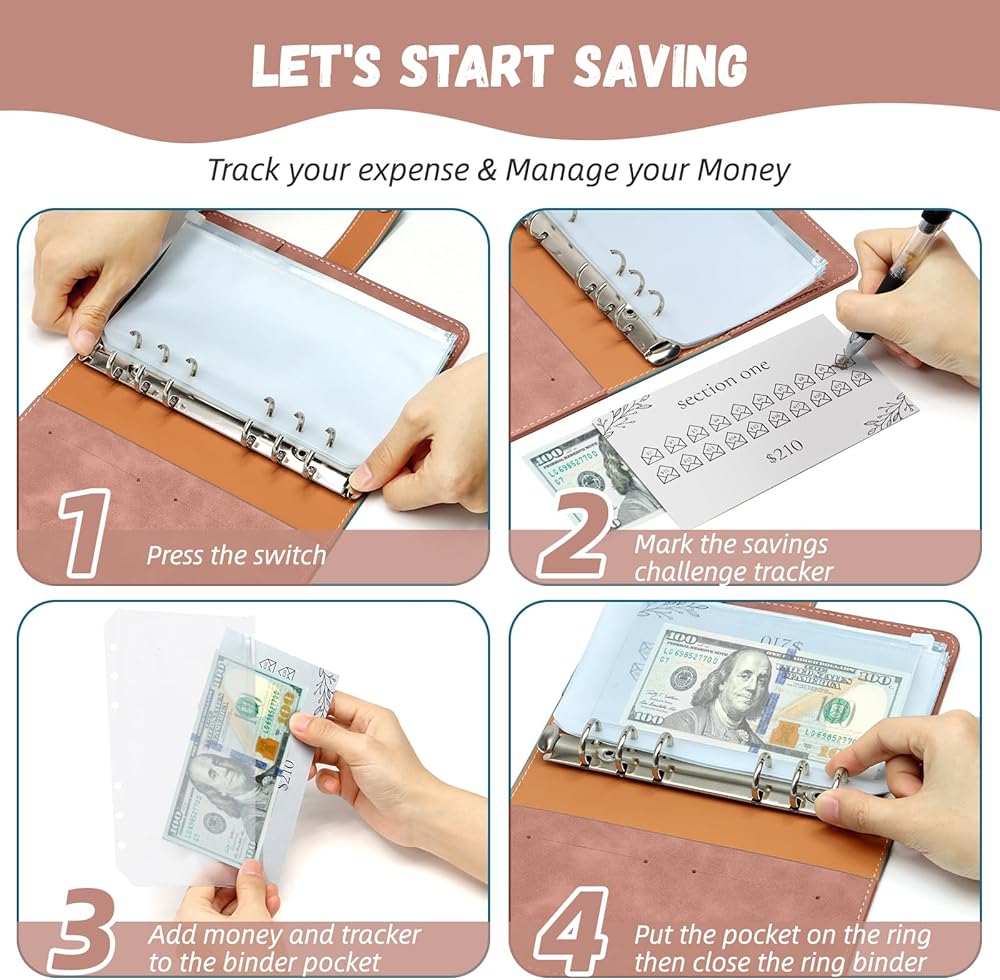 الموثق الميزانية ، موثق توفير الأموال A6 مع مظاريف نقدية تمت ترقيته ، كتاب تحدي التوفير في الميزانية مع 24 متتبعًا لتوفير الأموال لتوفير 5050 دولارًا ، 500 دولار ، 1000 دولار ، 10000 دولار إلخ