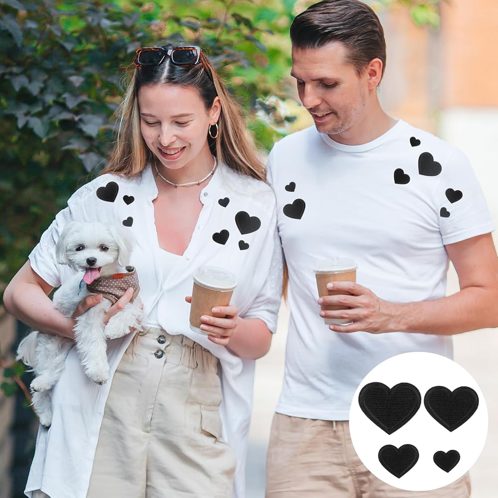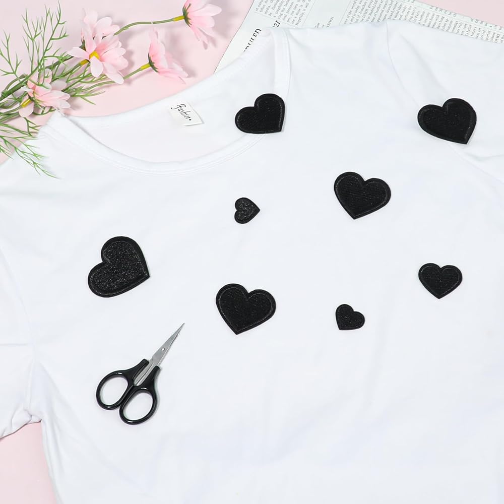 Giantree 24pcs شكل قلب الحديد على بقع ، مصغرة شكل قلب لطيف من الحديد على بقع خياطة مطرزة بقع تزيين الديكور 4 بقع القلب لحجم جاكيتات الجينز القبعات على الظهر (أسود)