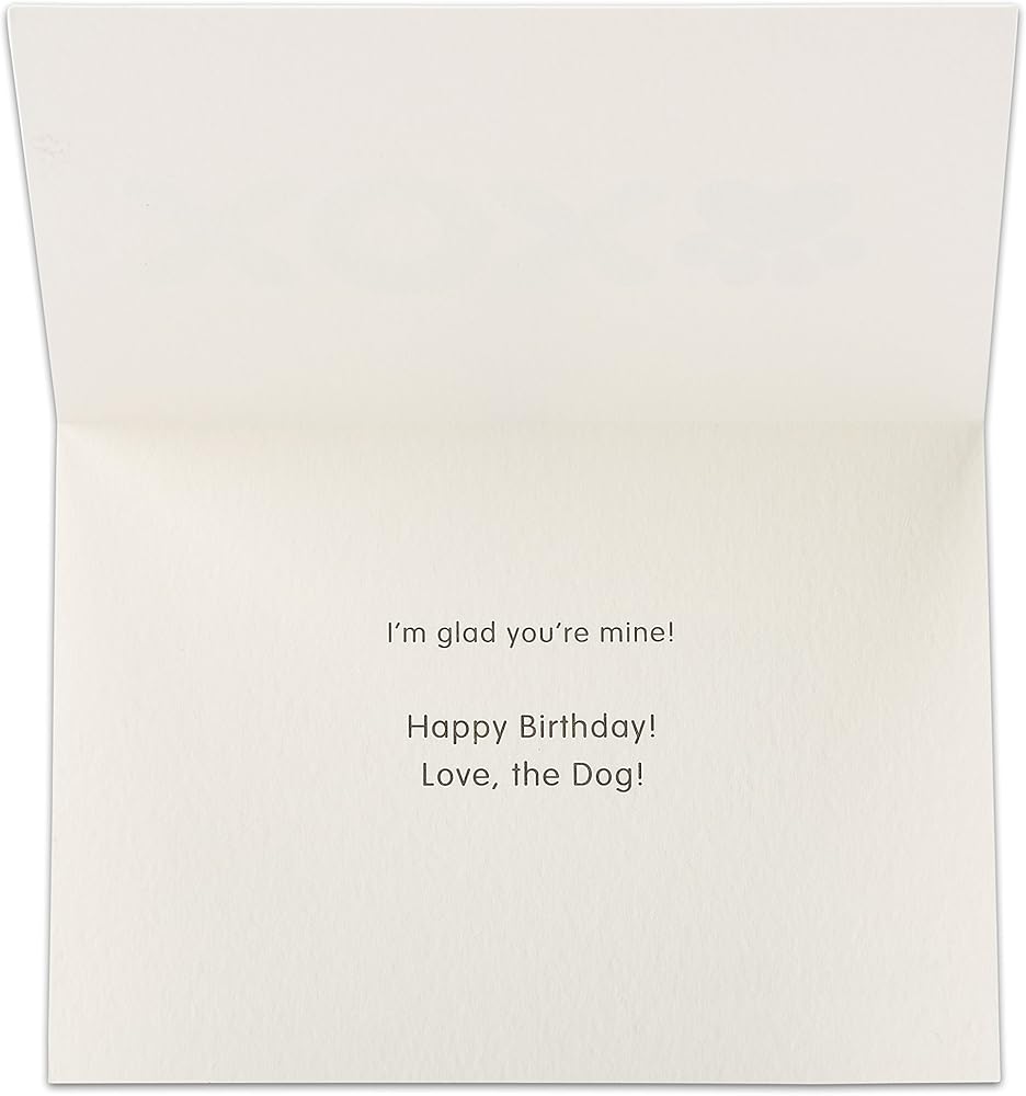 • This Birthday greeting card from a pet features pink illustrations of pet accessories on a white background perfect for any pet owner