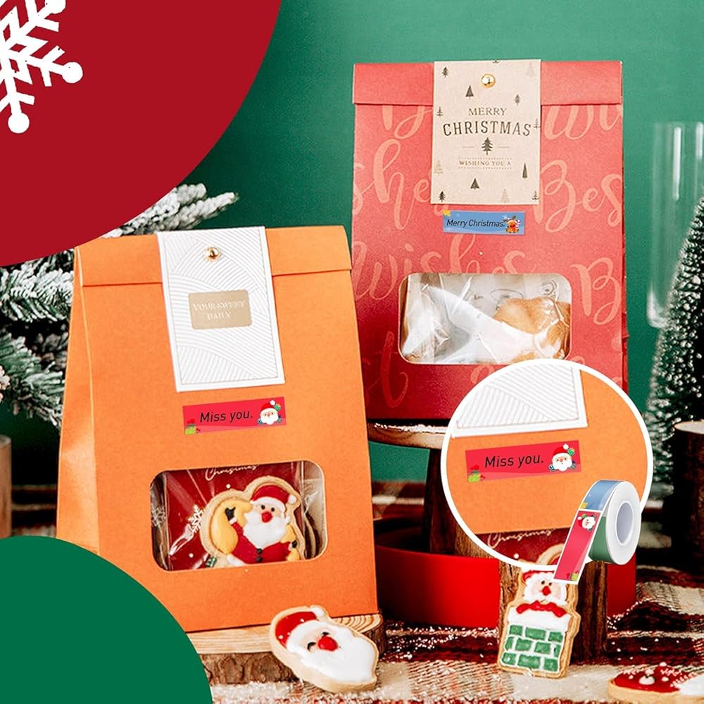【Specifications】Multifunctional rectangular labels, product size 14x50mm/0.55x1.97inch. Number of labels per volume: 130, Print black on christmas labels.