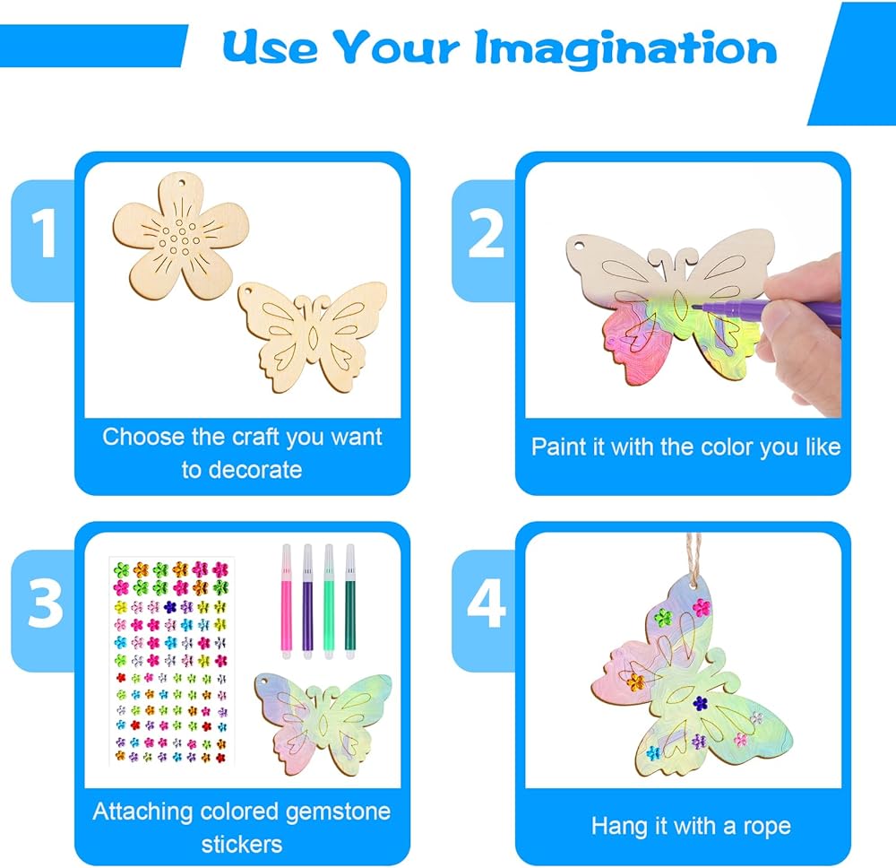 • 【Suitable for many occasions】 These wooden butterfly DIY handicrafts are exquisitely made and have a wide range of applications. They are suitable for family activities, school art classes, party activities, art creation, home decoration, holiday decorations, birthday gifts, community activities, and other occasions, helping you release your creativity and enjoy the fun of handicrafts