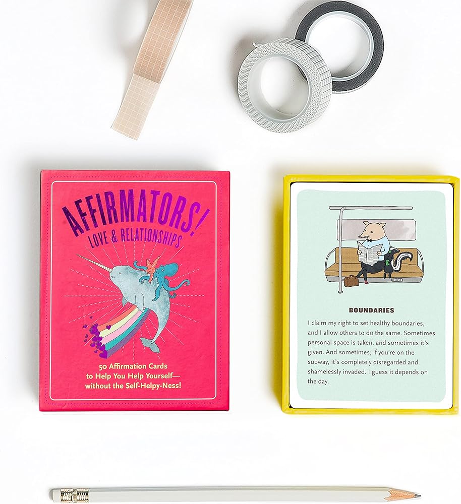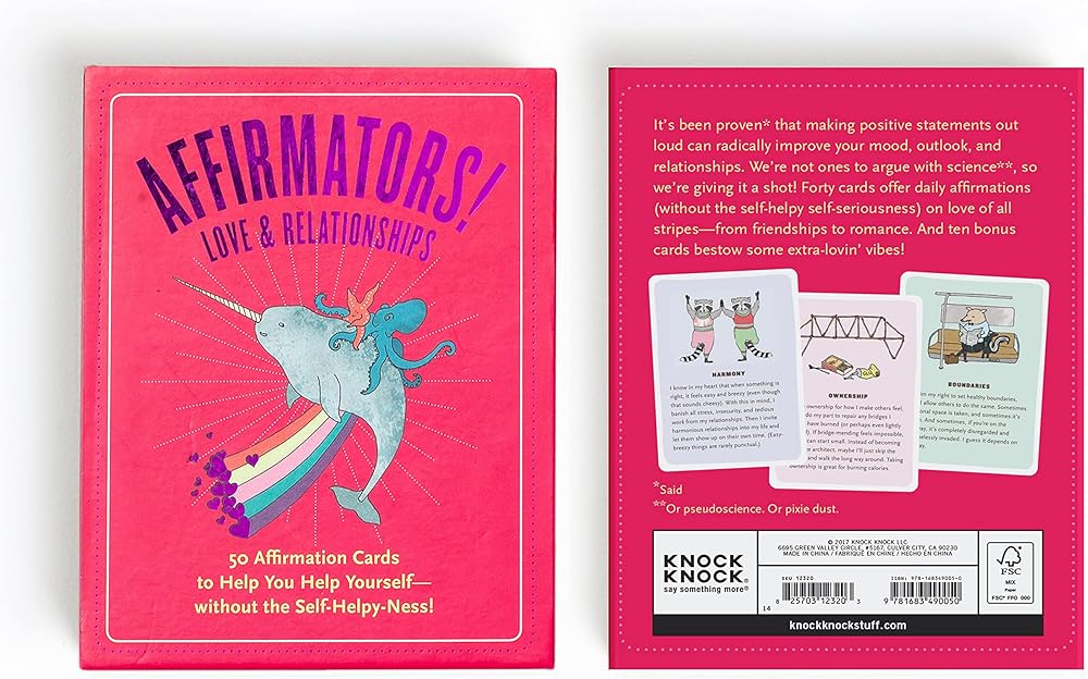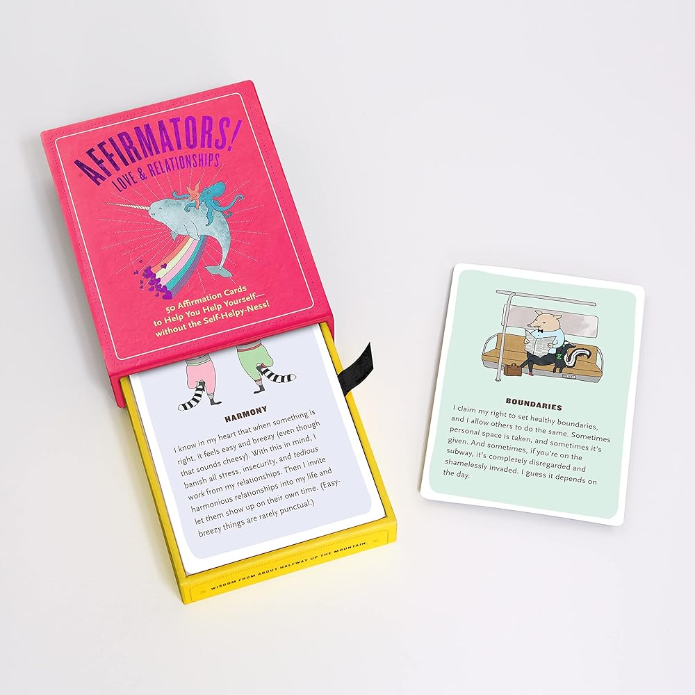 Even pessimists like a little positivity, so comedian Suzi Barrett created these inspirational-but-not-cheesy affirmation cards focusing on love of all stripes. Providing the fun of a horoscope with a little less woo-woo, and full of positive love affirmations, this whimsical box will help you help yourself, no shamanistic consult required! Explore how fans are taking #Affirmators out of the box, and into the universe!