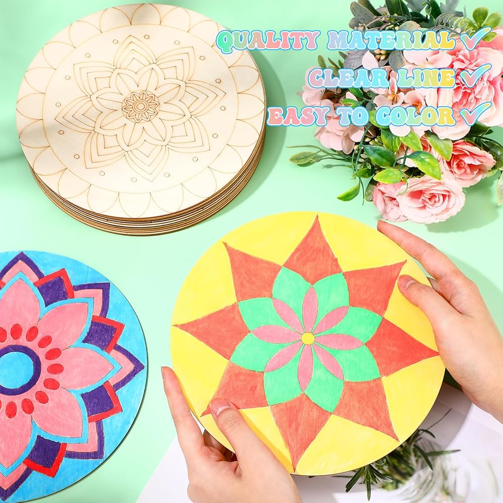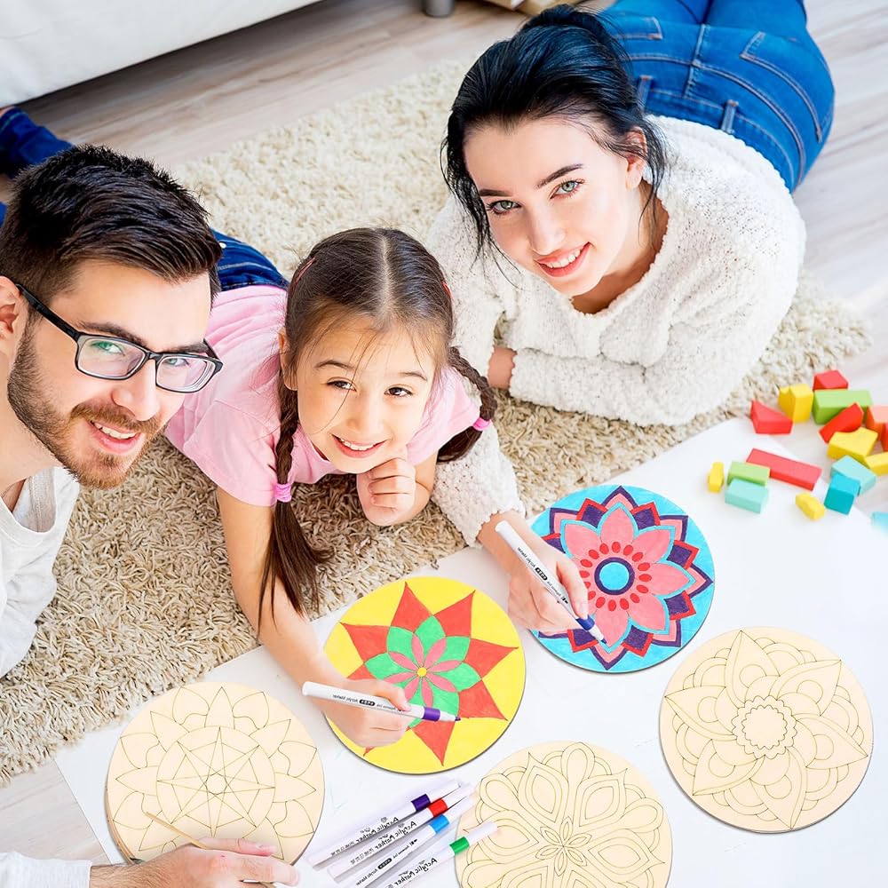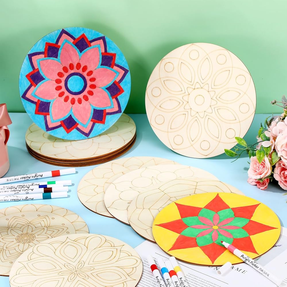 Comprehensive Crafting Set: with the wooden mandala decorative paint stencils set, you receive 30 wooden mandalas and 12 vibrant markers; Each mandala pattern is beautiful, providing ample options for your imaginative crafting needs