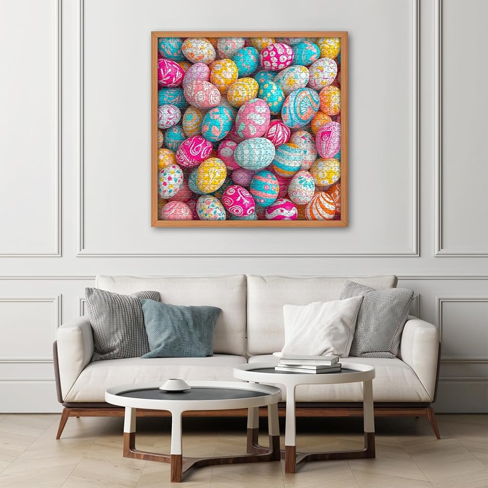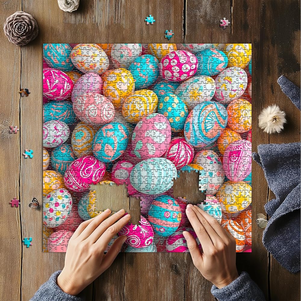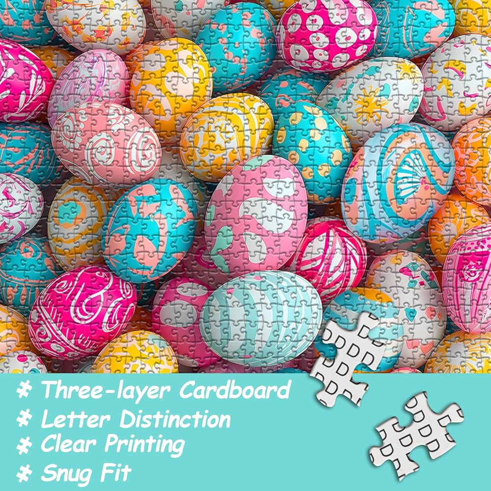 • Colorful Eggs Puzzles 1000 Pieces: It showcases a collection of vibrant and intricately patterned Easter eggs, each meticulously decorated with a variety of designs including flowers, stripes. The eggs presented in this image will add a unique touch of color and joy to your Easter celebration