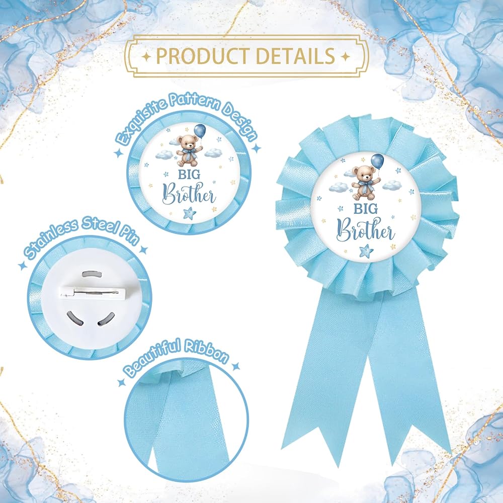طفل Bear Bear Brother Big Brother Tinplate شارة ، أخي دب لطيف ليكون دبوسًا ، دب دبوس زر عيد ميلاد سعيد للصبي ، شريط عيد ميلاد زرقاء روزت بوي جائزة ، دب تحت عنوان حفلة استحمام الطفل