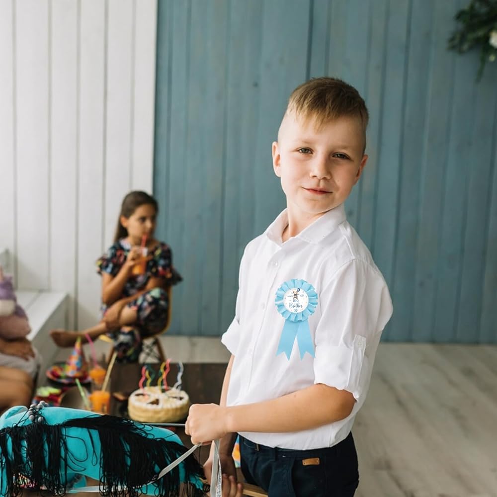 • 🧸[BLUE BROTHER TO BE PIN] This button pin is made of high-quality tinplate and satin materials. The buttons are sturdy, not easily damaged and reusable. You just need to open the pin on the back and buckle it on your clothes. The button is rotatable, so you can swing it the way you like.