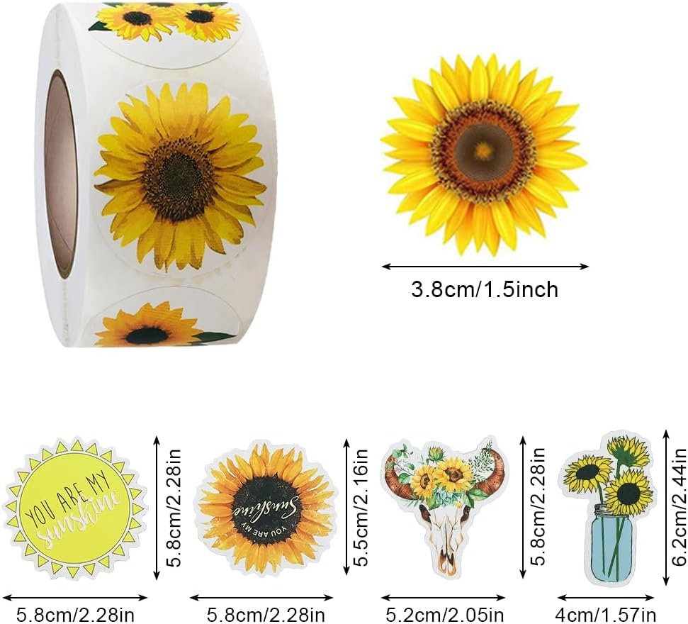 تشمل الحزمة: هناك 1 Rolls 500 قطعة ملصقات عباد الشمس و 50 قطعة ملصقات لطيفة مختلفة في كل حزمة. إذا لم تكن راضيًا عن المنتج أو هناك أي مشكلة في المنتج ، فيرجى الاتصال بنا وسنحله لك.