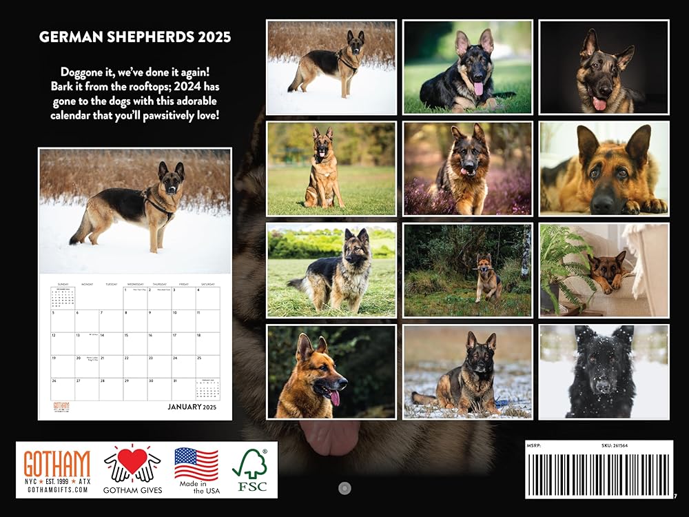 German Shepherd Calendar 2025 Wall Monthly Calender Shepard Gifts 12 Month | American Made In The USA