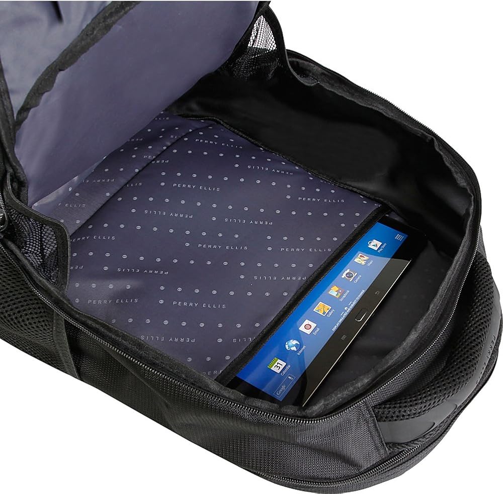 حقيبة الظهر المحمول Perry Ellis Men P13 Business مع جيب اللوح ، الأسود ، حجم واحد