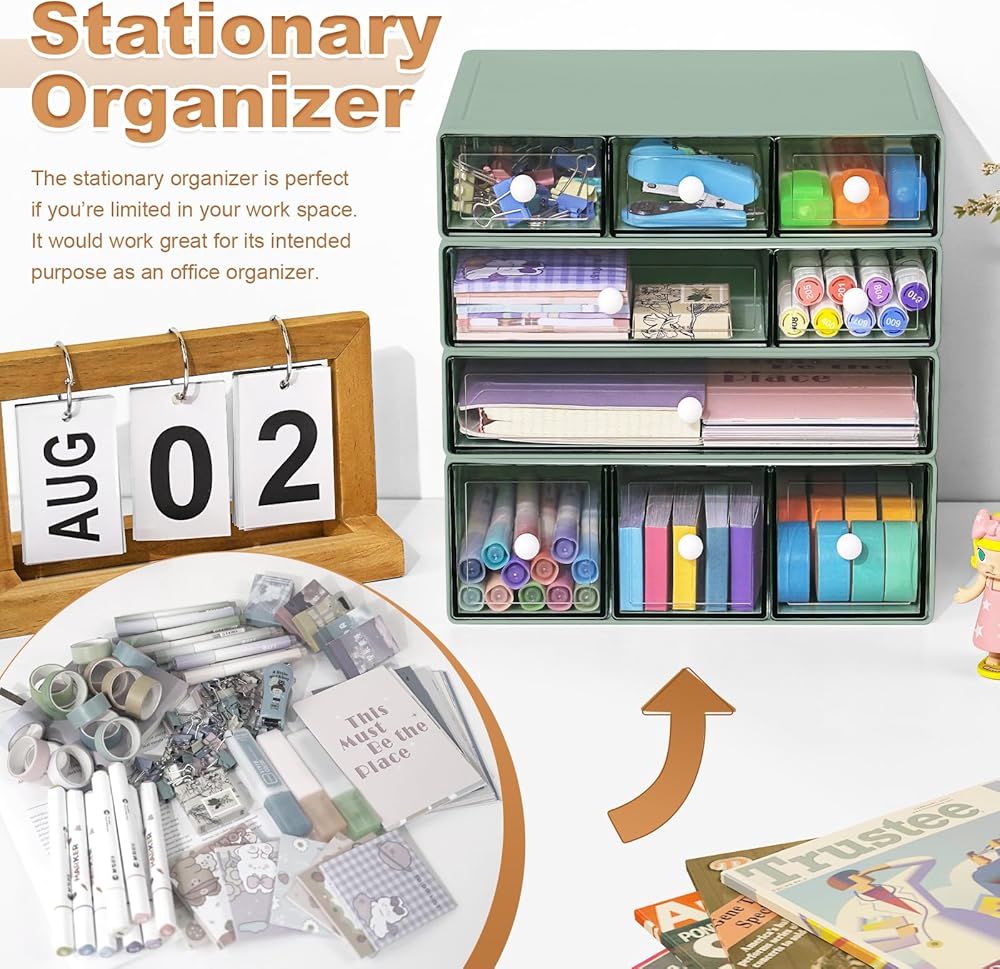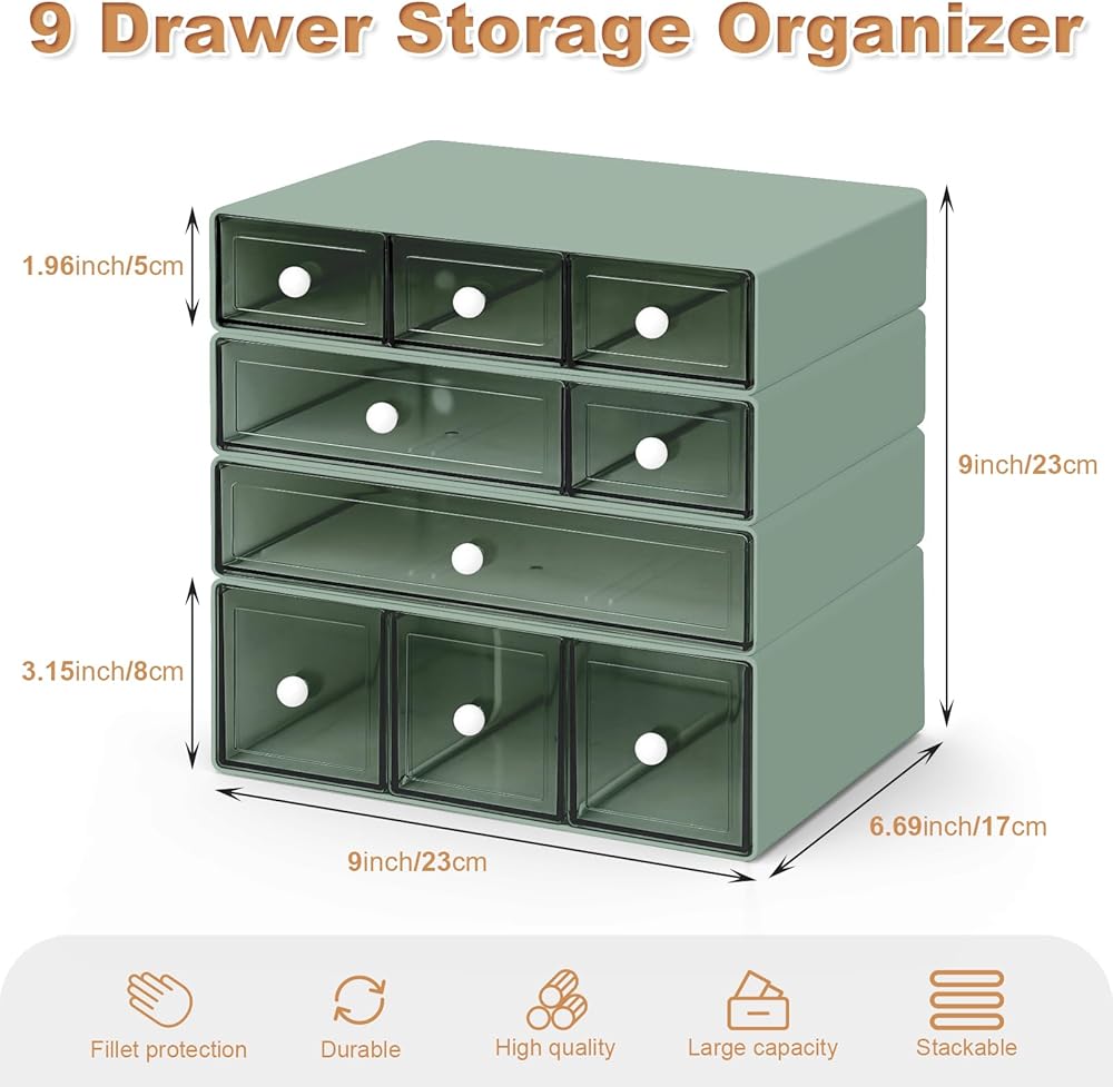 أنيقة وعملية: نظام الألوان الكلاسيكي والمظهر المستطيل البسيط أنيق ومناسب لجميع أنماط الغرف. منظم المكتب مع 9 أدراج يحافظ على فوضى مكتبك. تساعدك الأدراج الشفافة على العثور بسرعة على العناصر التي تحتاجها