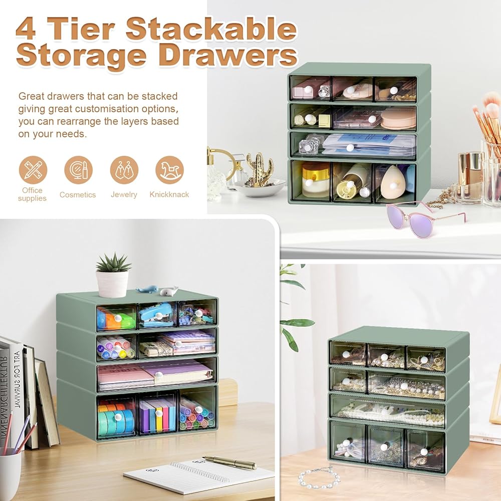 الحجم المثالي والقابل للتكديس: 4 مستويات منظم سطح المكتب مع 9 أدراج ، يحتوي على ثلاثة أحجام تقليدية من 23 × 17x5 سم وحجم واحد مرفوع 23*17*8cm. صناديق تخزين سطح المكتب القابلة للتكديس تخلق تخزينًا رأسيًا ومساحة مجانية. يمكنك تكديسك بحرية وفقًا لتفضيلاتك واحتياجاتك