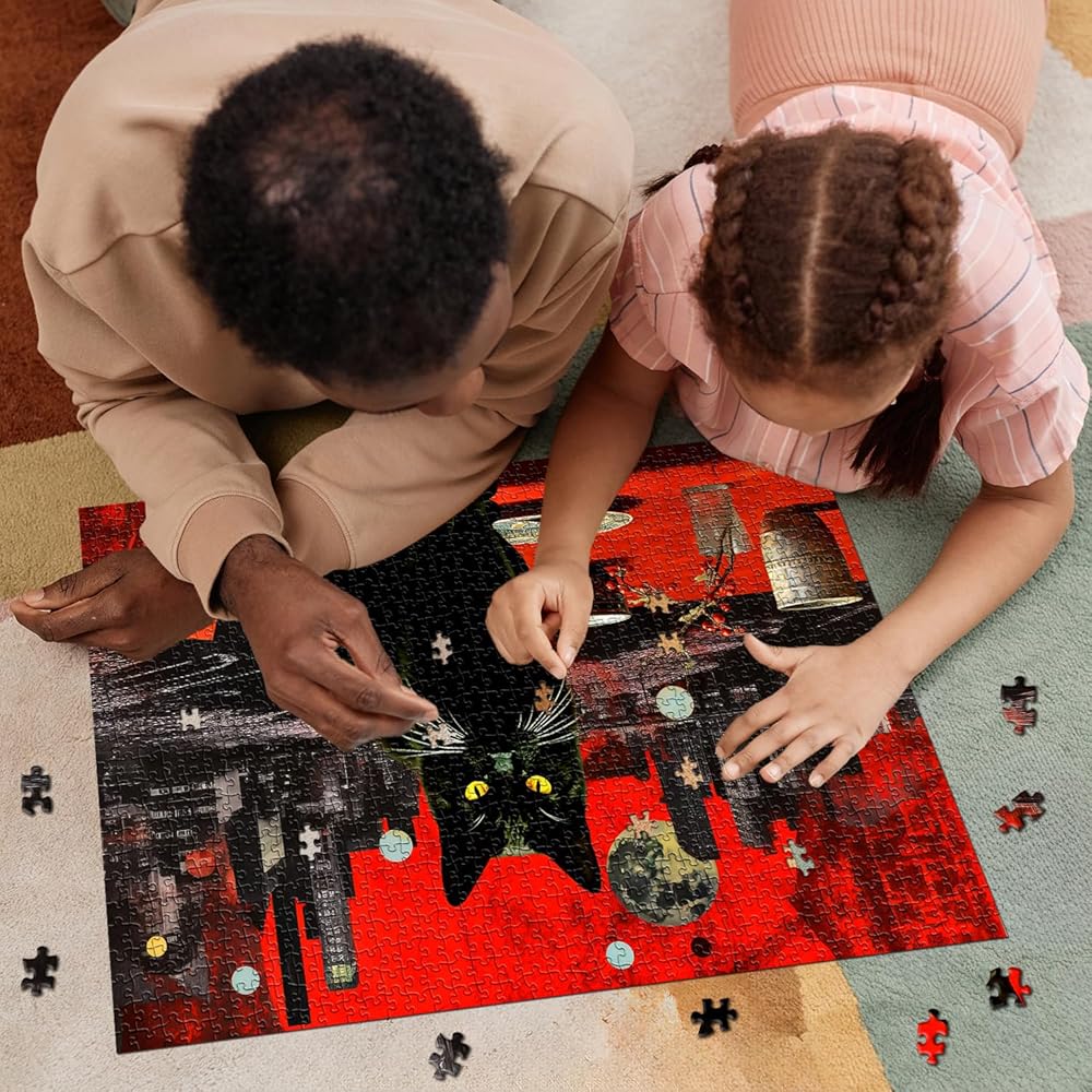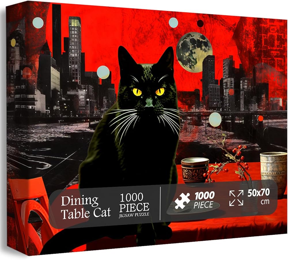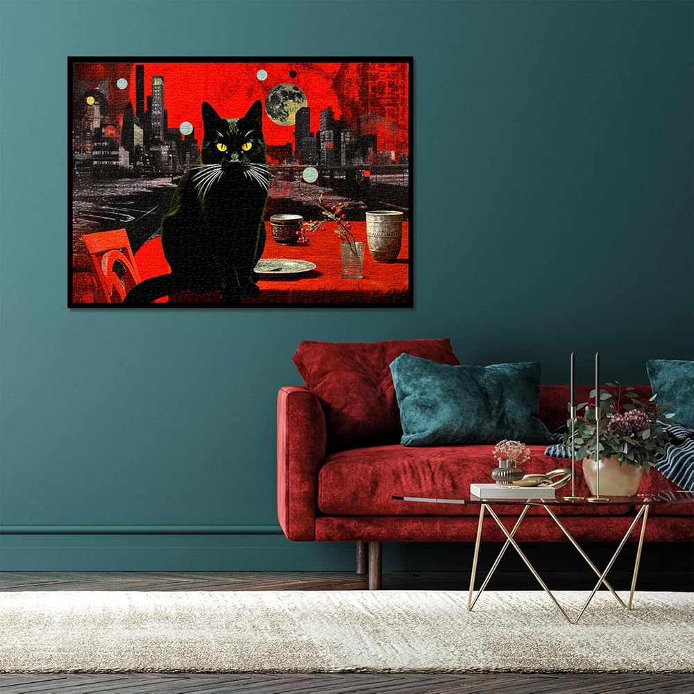 Vintage Cat Puzzles for Adults 1000 Pieces, Impossible Black Cat Art Jigsaw Puzzles, Hard Retro Kitty Kitten Animal Puzzle