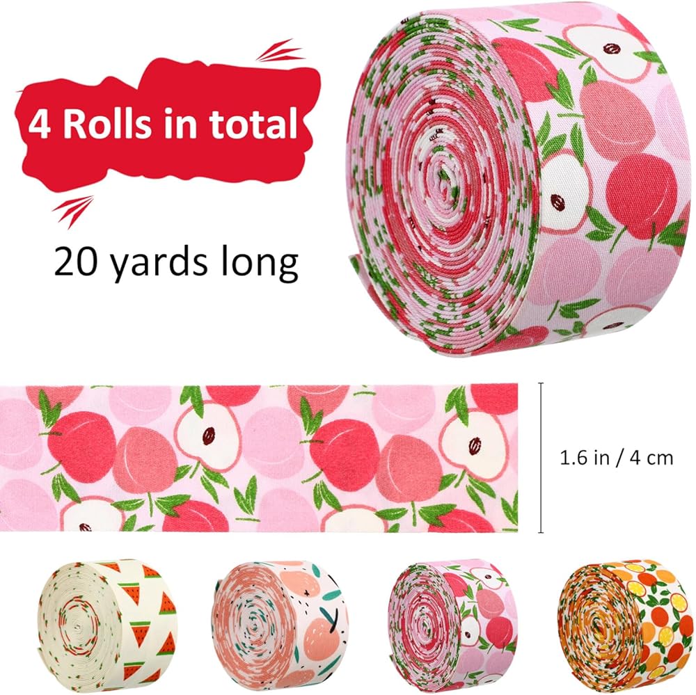 الحجم: تشتمل الحزمة على 4 لفات من الأشرطة المطبوعة بالفواكه ، ويبلغ طول كل لفة 1.57 بوصة ، وطولها 5 ياردة وغير متزايدة ، ويبلغ إجمالي 20 ياردة