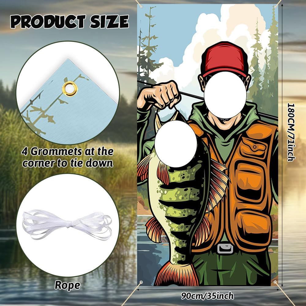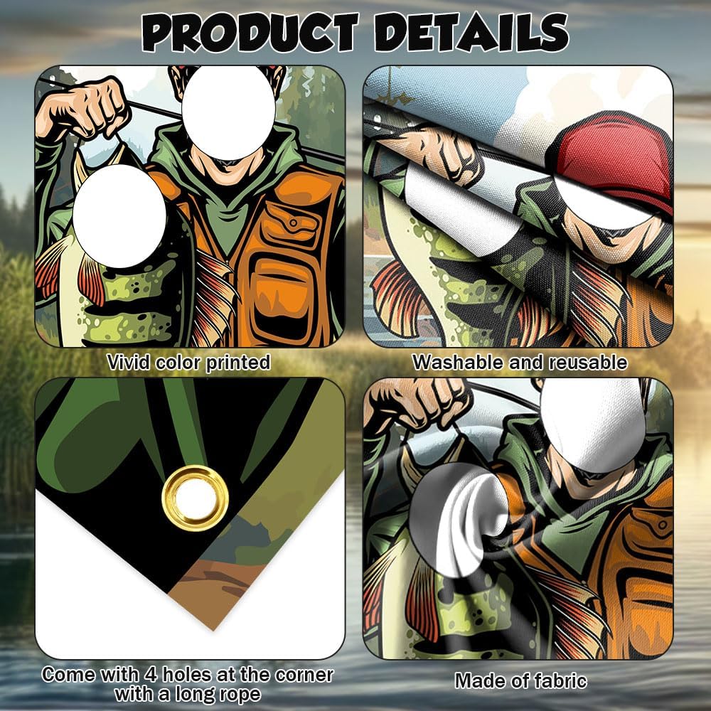 • ما ستحصل عليه: ستحصل على لافتة باب صورة لصيد الأسماك بحجم 35*71 بوصة وحبل ، والتي يمكن استخدامها لتعليق لافتة الصياد الصيد. إنه كبير بما يكفي لالتقاط الصور.
