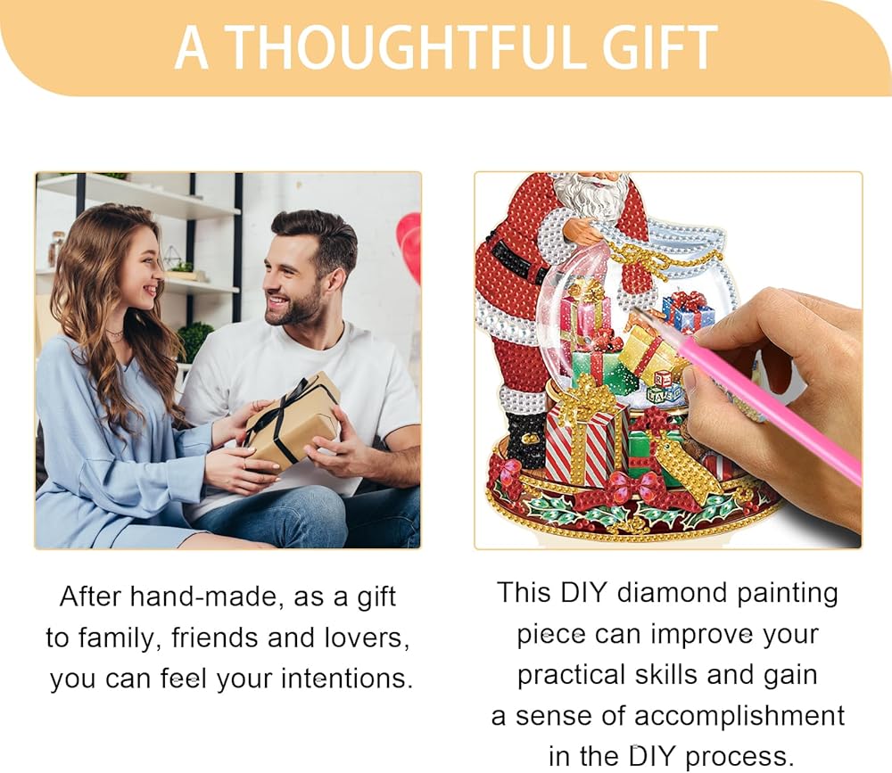 • Home Decor: Diamond art painting ornament with wood base design, you can place it in your living room, bedroom, fireplace, cabinet, shelf and other places you like. The combination of single-sided sparkling diamonds and the beauty of special shaped diamonds enhances the visual appeal and uniqueness of the artwork, and the inlaid rhinestones refract the shimmering luster under the light. This diamond painting kit is suitable for young and old, perfect for home's arts and crafts, decorations.