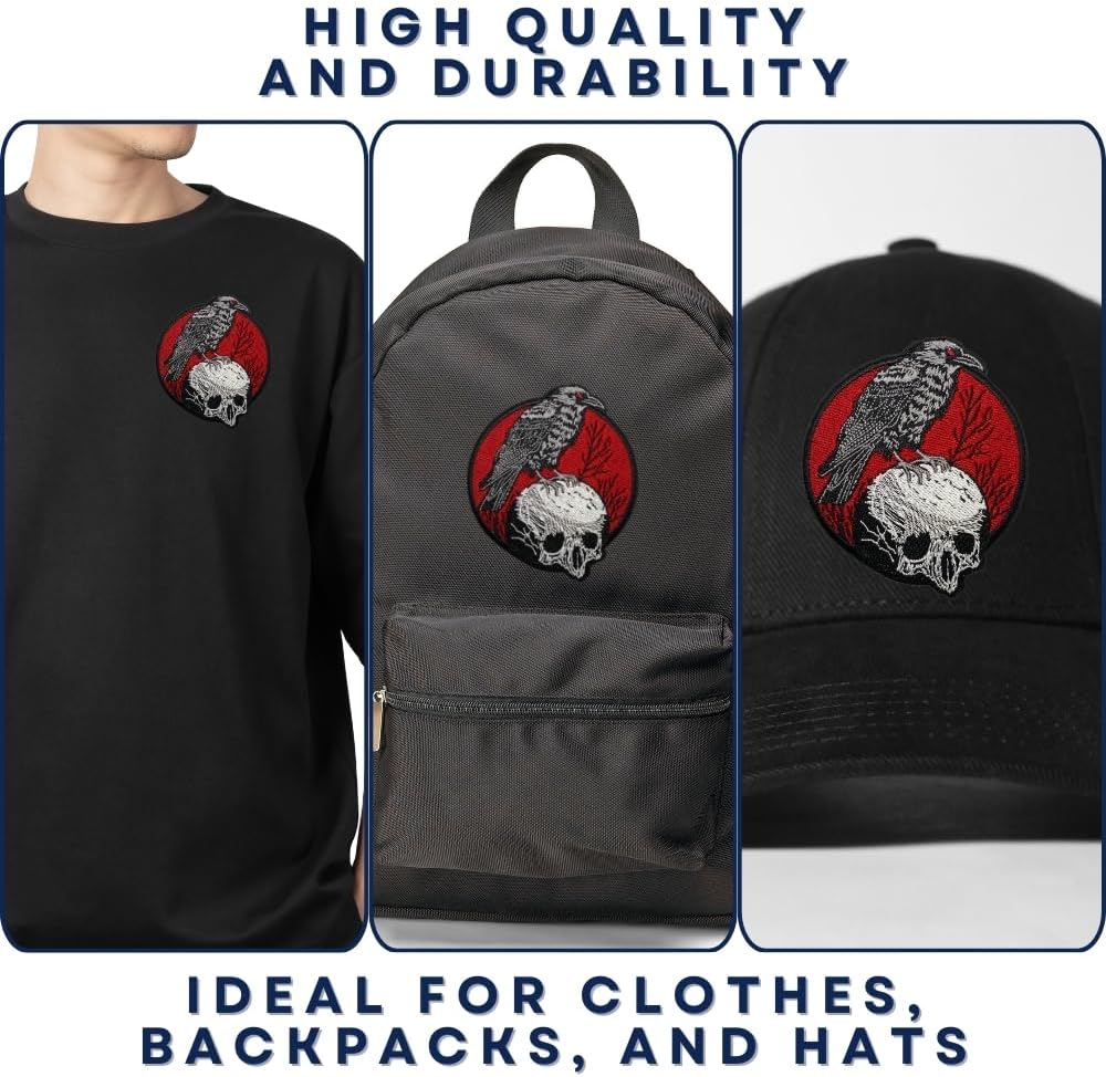 عملية تطبيق سهلة: مثالية لمحبي DIY ، من السهل تطبيق Skull Raven Patch الخاص بنا. يتم تضمين التعليمات الكاملة ، مما يسمح لك بتخصيص عناصر مثل الملابس والسترات وأكياس الكمبيوتر المحمول بسرعة وحقائب الظهر والقبعات والديكور المنزلي في 60 ثانية فقط