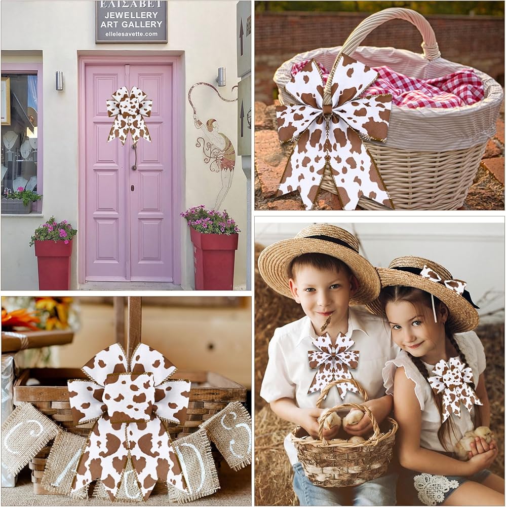 【Cute Cow Print】: All ribbons in this package are printed with lovely cow spot patterns, look beautiful and exquisite, which could add a different color to your holiday decorations or gift packaging. Perfect choice for making different bow decorations, make your hair bow more funny and cute. And also suitable for gift wrapping, would make your gifts look more nice and eye-catching, the burlap cow spot wired ribbons can better accent your crafts.