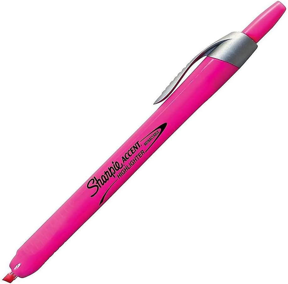 Sharpie Accent Pen-Style Retractable Highlighters, 12 Fluorescent Pink Highlighters (28029)