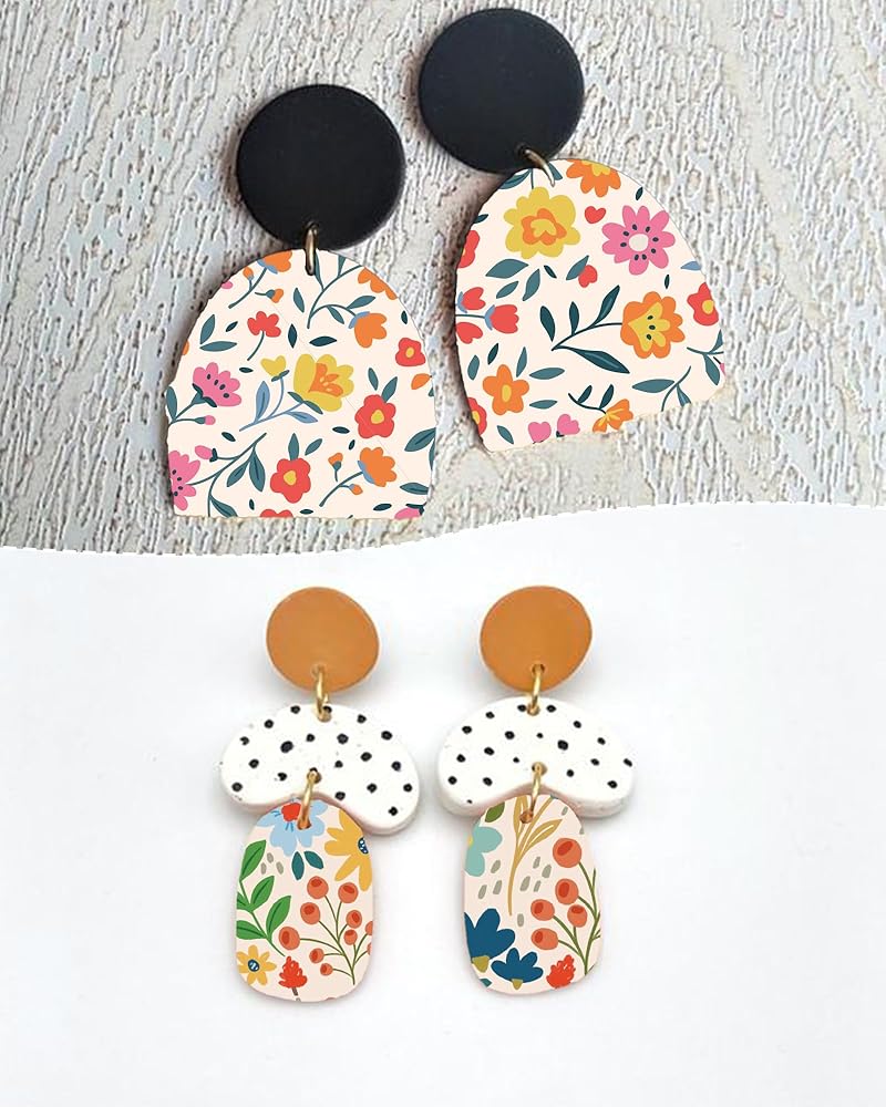 • Make Cute Flower Clay Earrings: These bouquet clay transfer paper are about 2.75*4.72 inches in size. You can cut off the pieces you need for making every single clay jewelry. There's also other flower transfer paper sets hit the store shelves. Check if you find the one you favor.