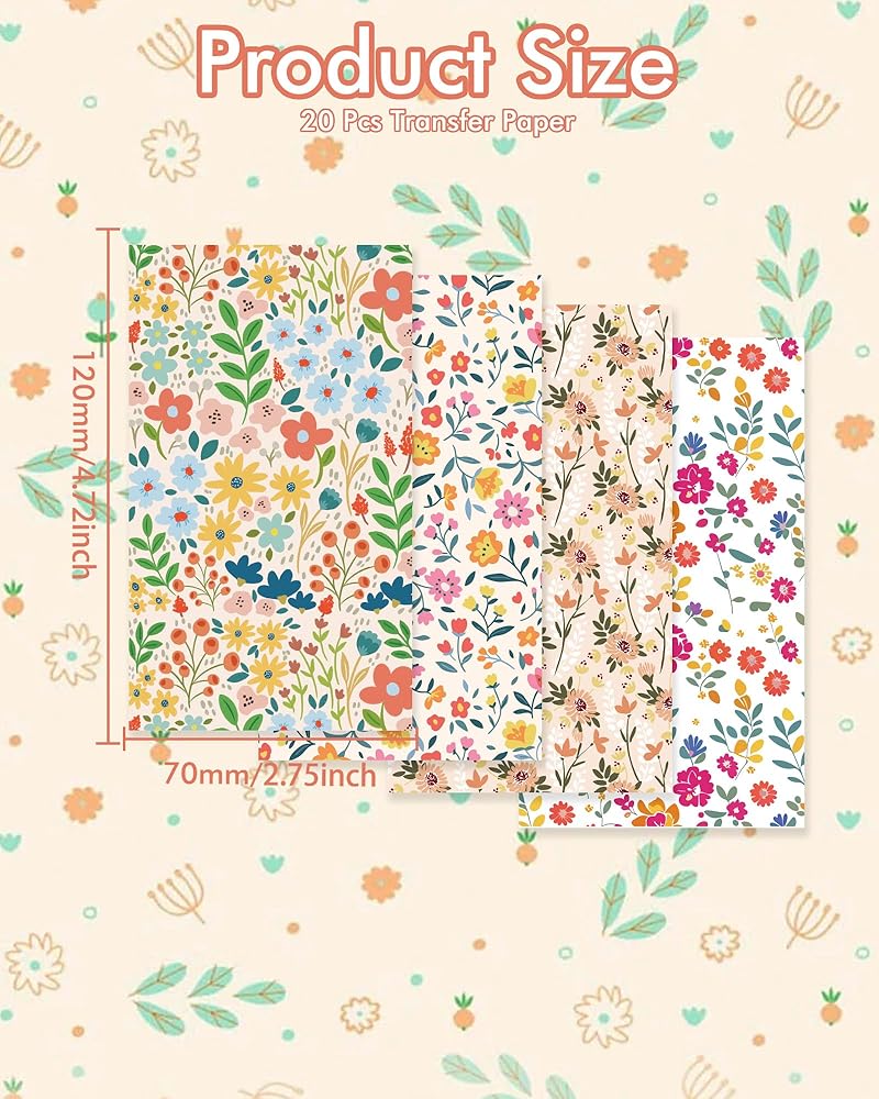 Puocaon Flower Clay Transfer Paper - 4 Design 20 pcs paper paper for polymer clay Jewelry ، Floral Pattern Polymer Clay Seucts for Polymer Clay Mown