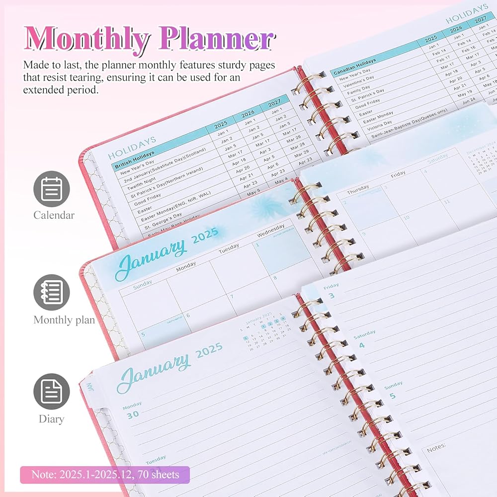 المواد: تم إنشاؤها بمواد عالية الجودة ، تم تصميم هذا المخططين 2025 للنساء لتحمل الاستخدام اليومي ، مخطط أسبوعي لضمان الحفاظ على ملاحظاتك وجداولك طوال العام