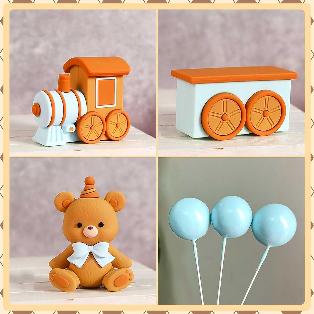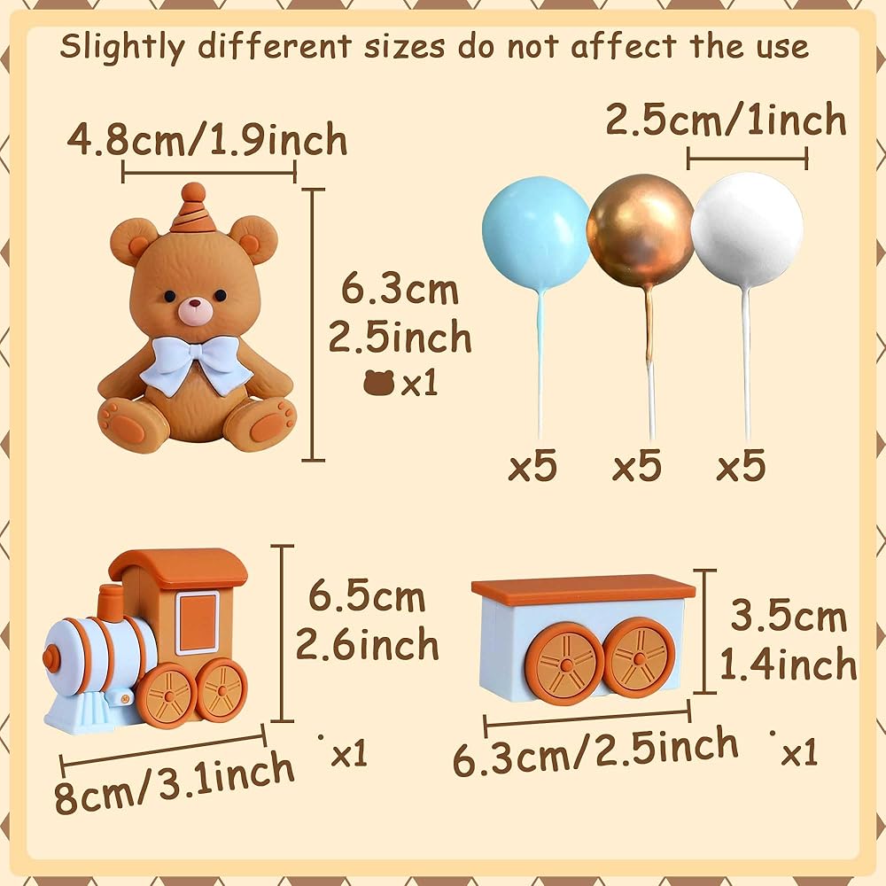سوف تحصل على: 1 × دب الديكور كعكة ، 2 × تزيين كعكة القطار ، 15 × كرات الكيك. الحجم كما يظهر الصورة